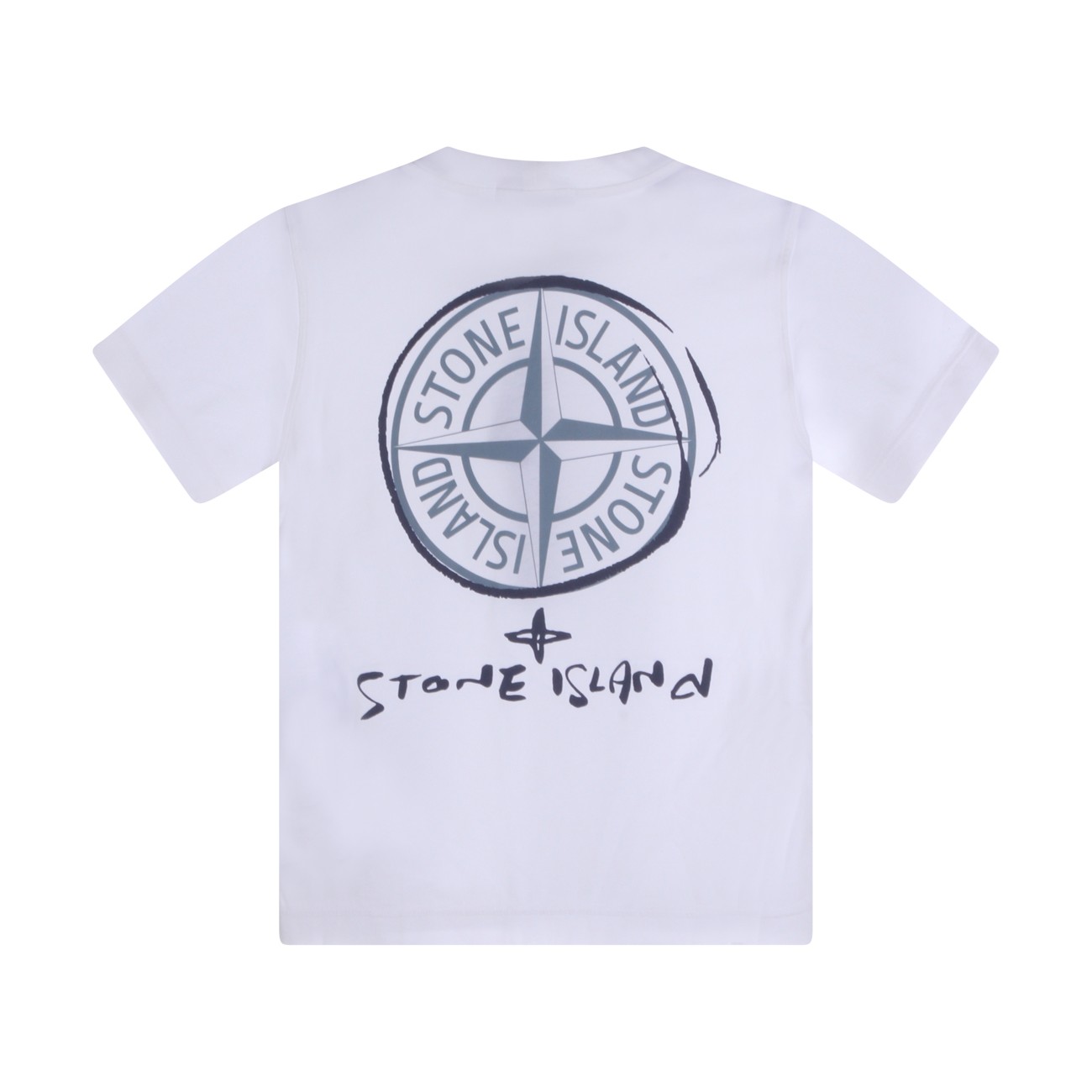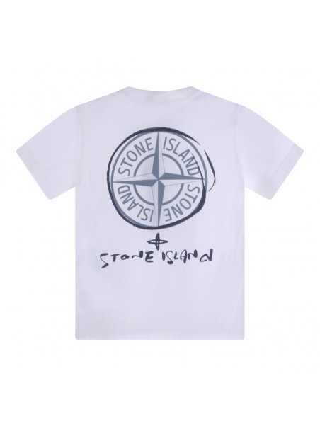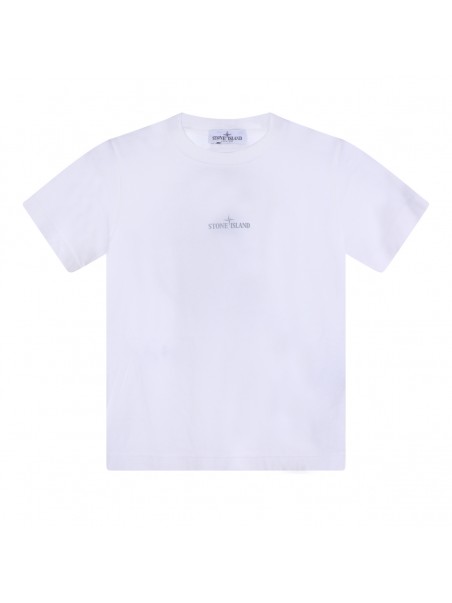White cotton t-shirt from Stone Island featuring round neck, short sleeves, frontal logo and regular vestibility.