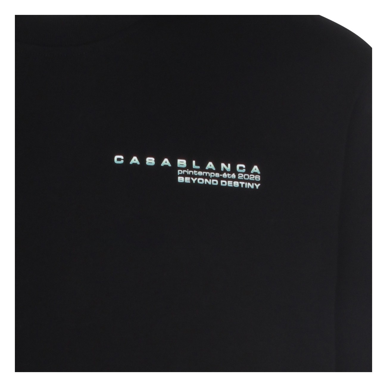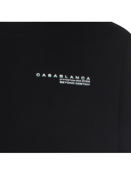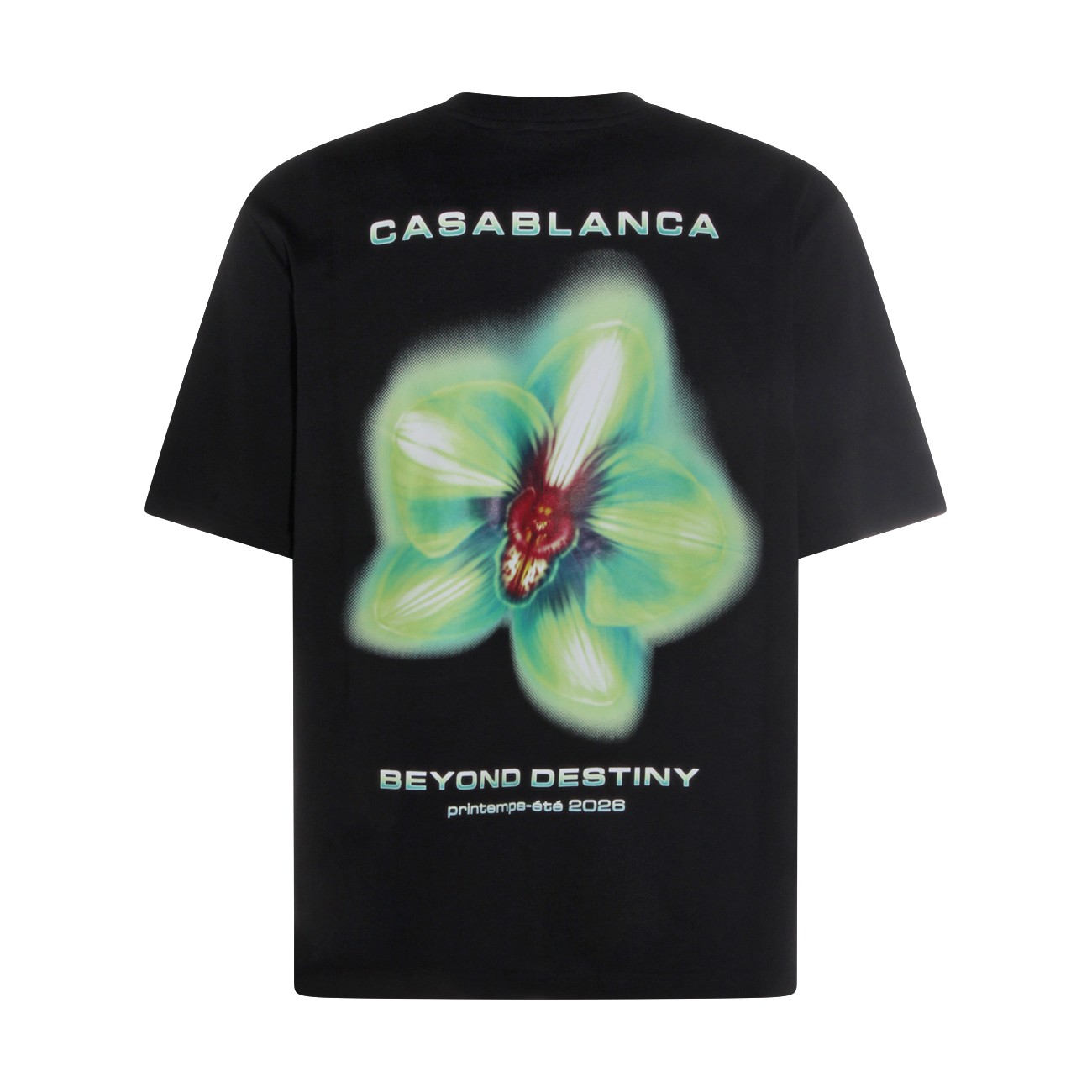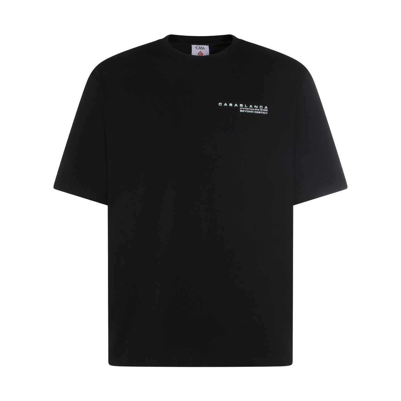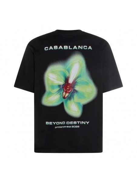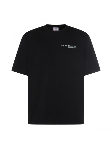 Black cotton t-shirt from Casablanca featuring round collar, short sleeves, front and back stamps and regular vestibility.