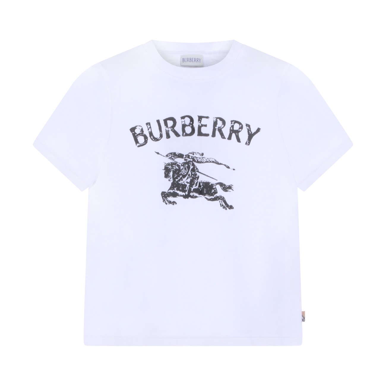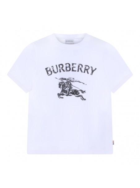 White cotton t-shirt from Burberry featuring crew neck, short sleeves, frontal logo stamp and regular vestibility.