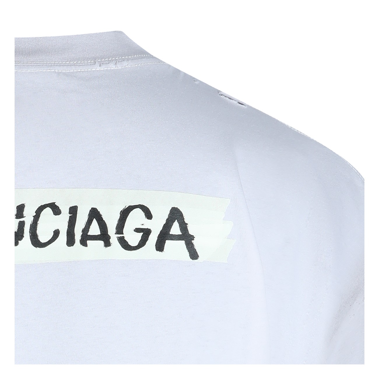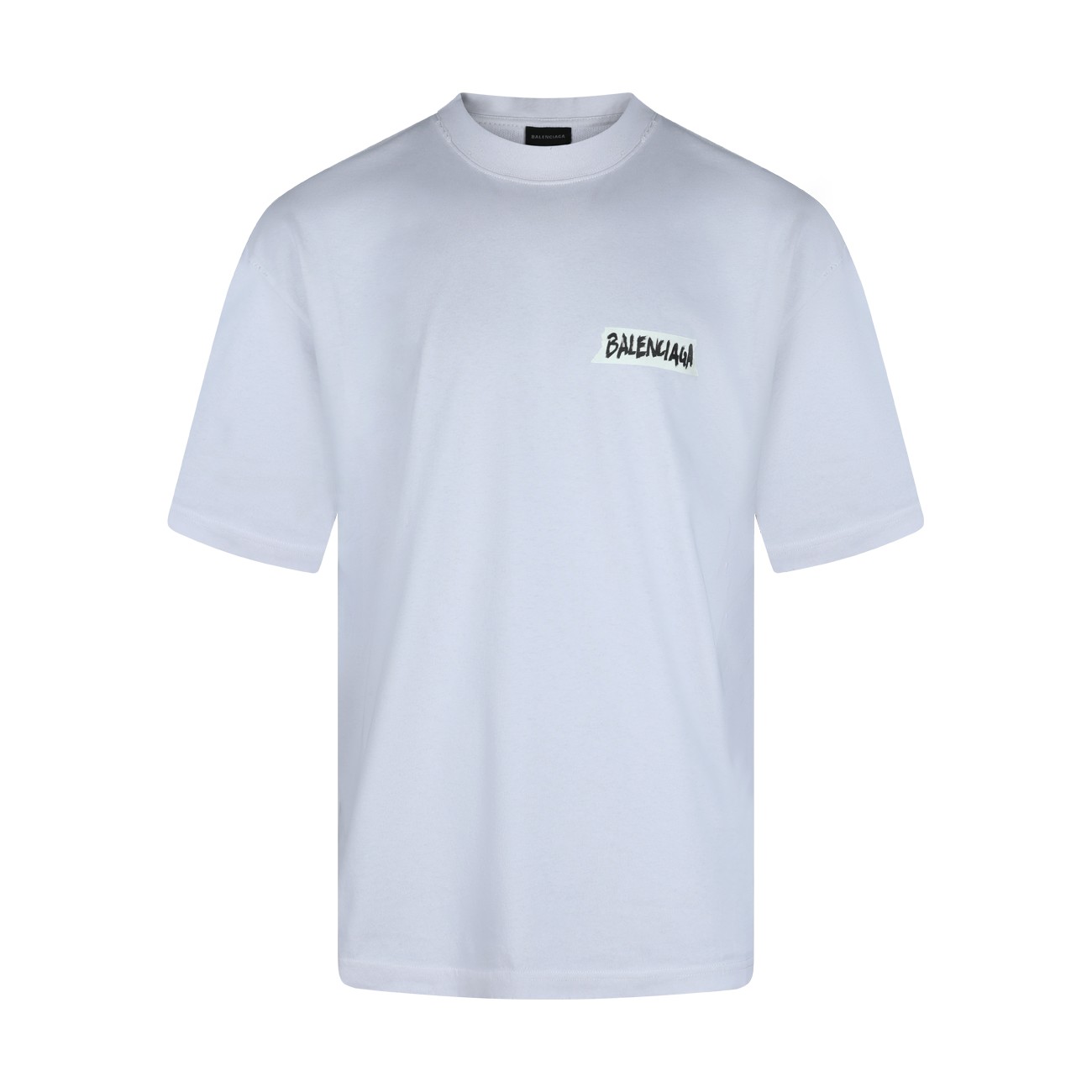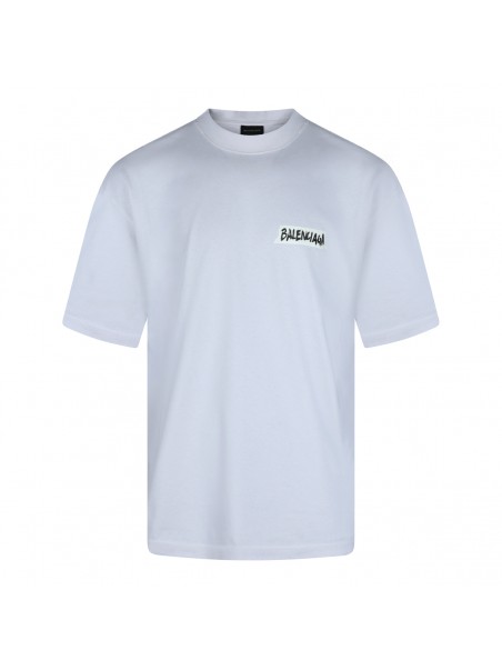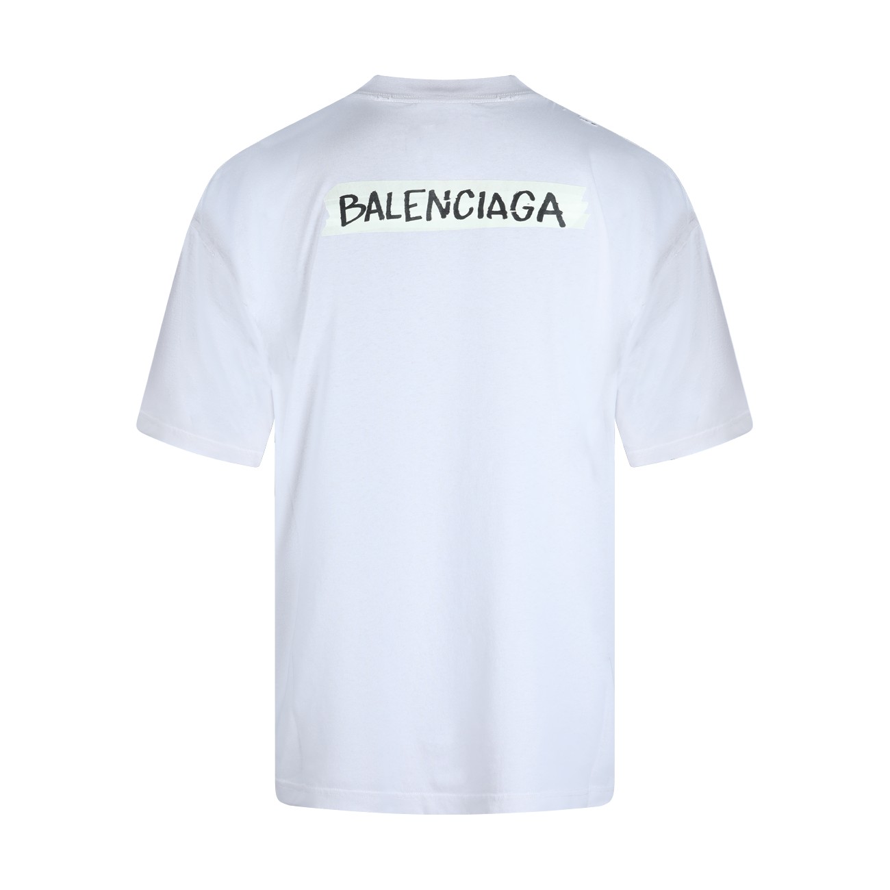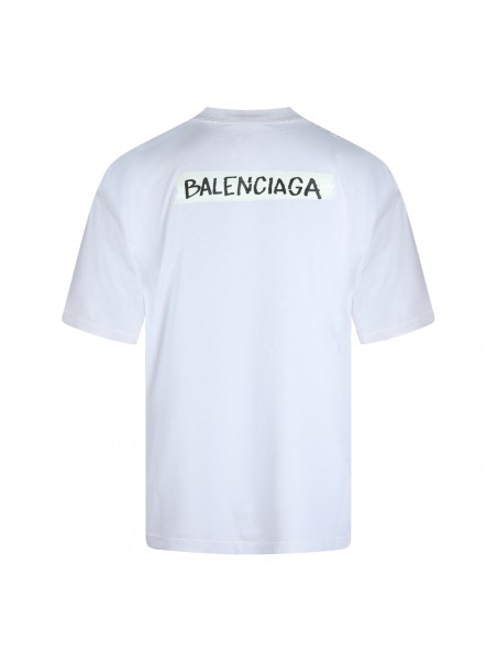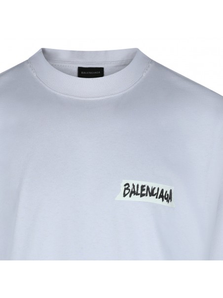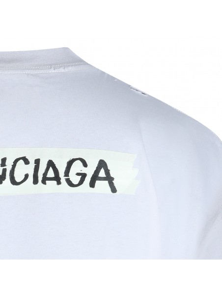 White cotton t-shirt from Balenciaga featuring round collar, frontal print and oversize vestibility.