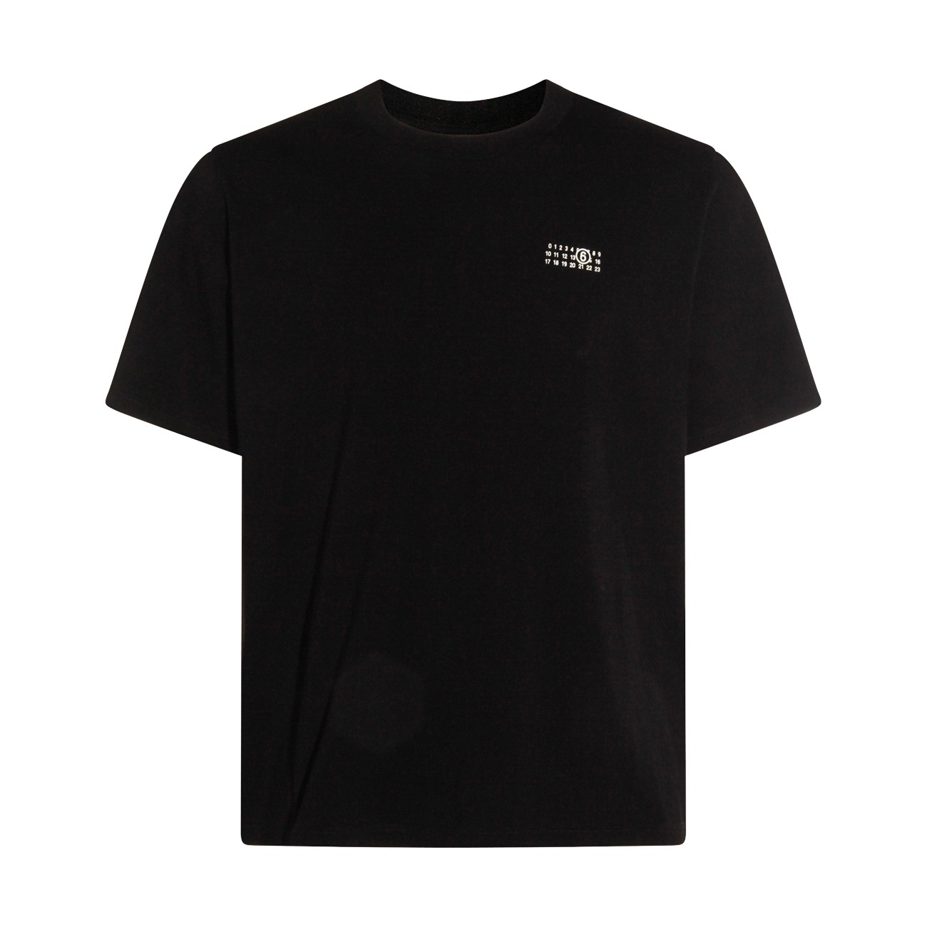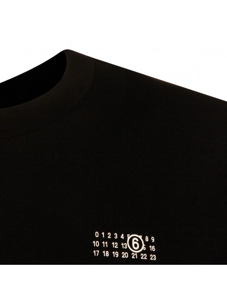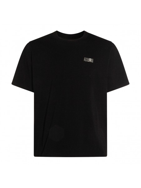 Black cotton t-shirt from Mm6 Maison Margiela featuring round collar, short sleeves, prints and regular vestibility.