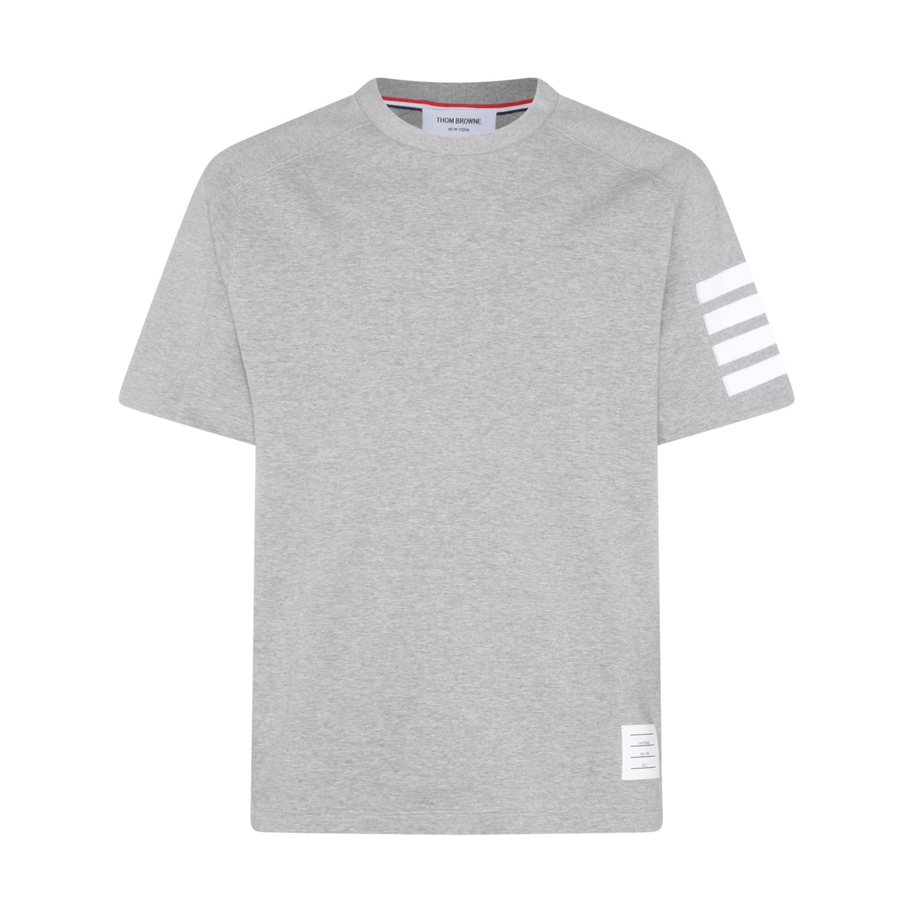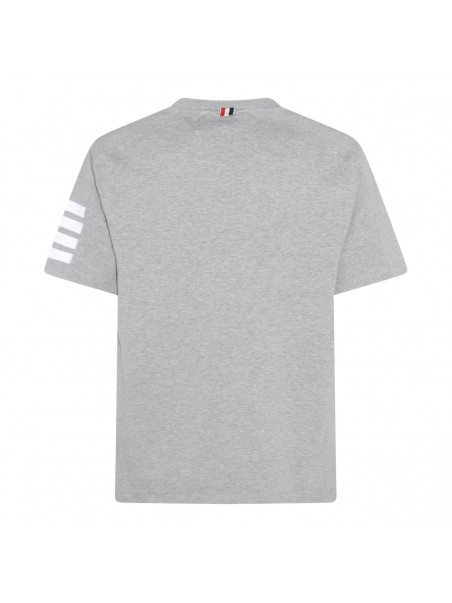 Grey cotton t-shirt from Thom Browne featuring round collar, short sleeves, logo patch and regular vestibility.