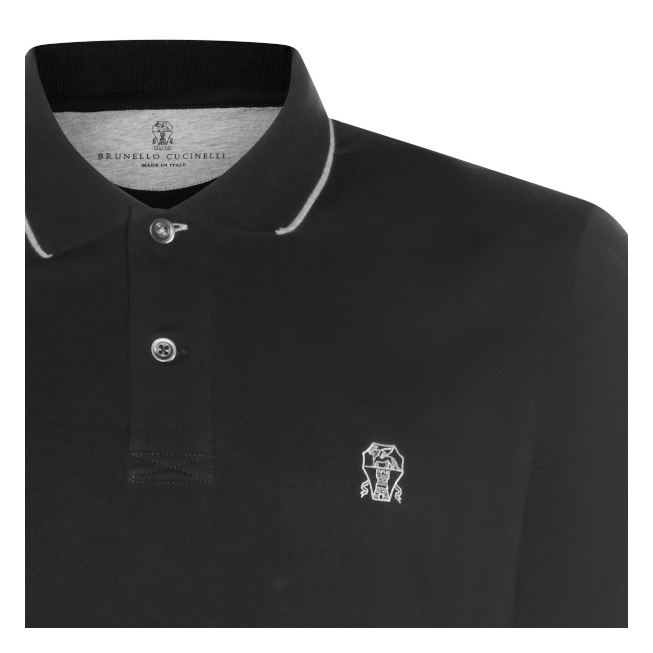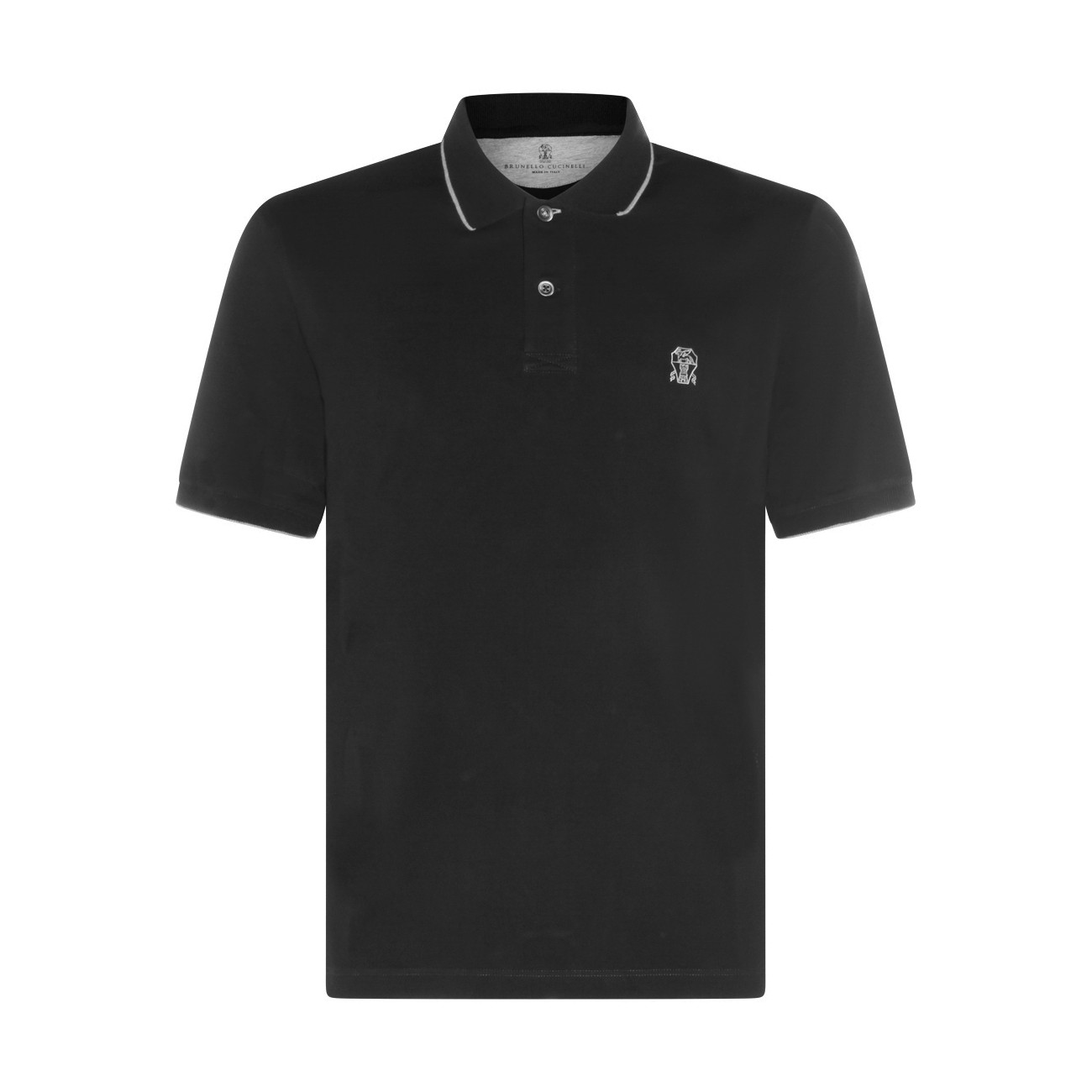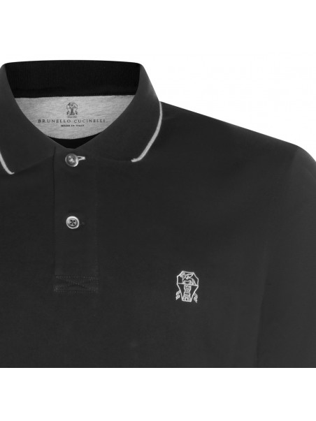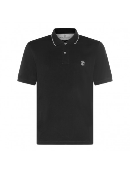 Black cotton polo shirt from Brunello Cucinelli featuring regular collar, buttons fastening, short sleeves, frontal embroidered logo and regular vestibility.
