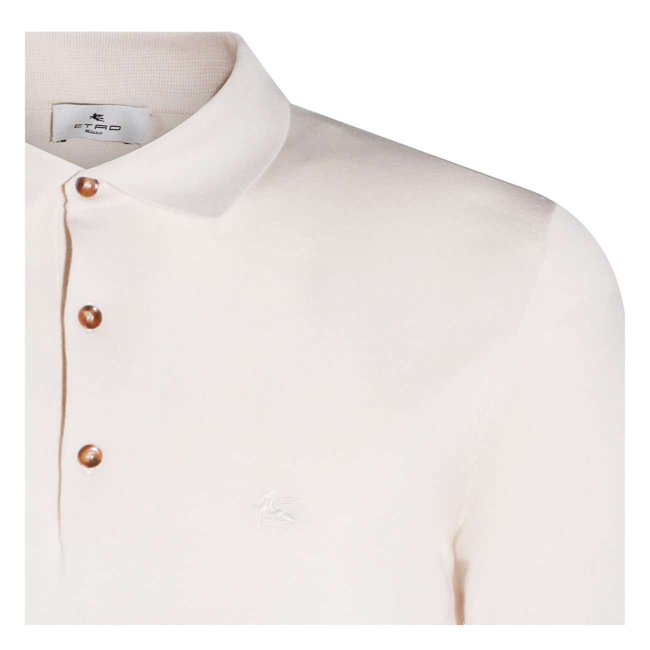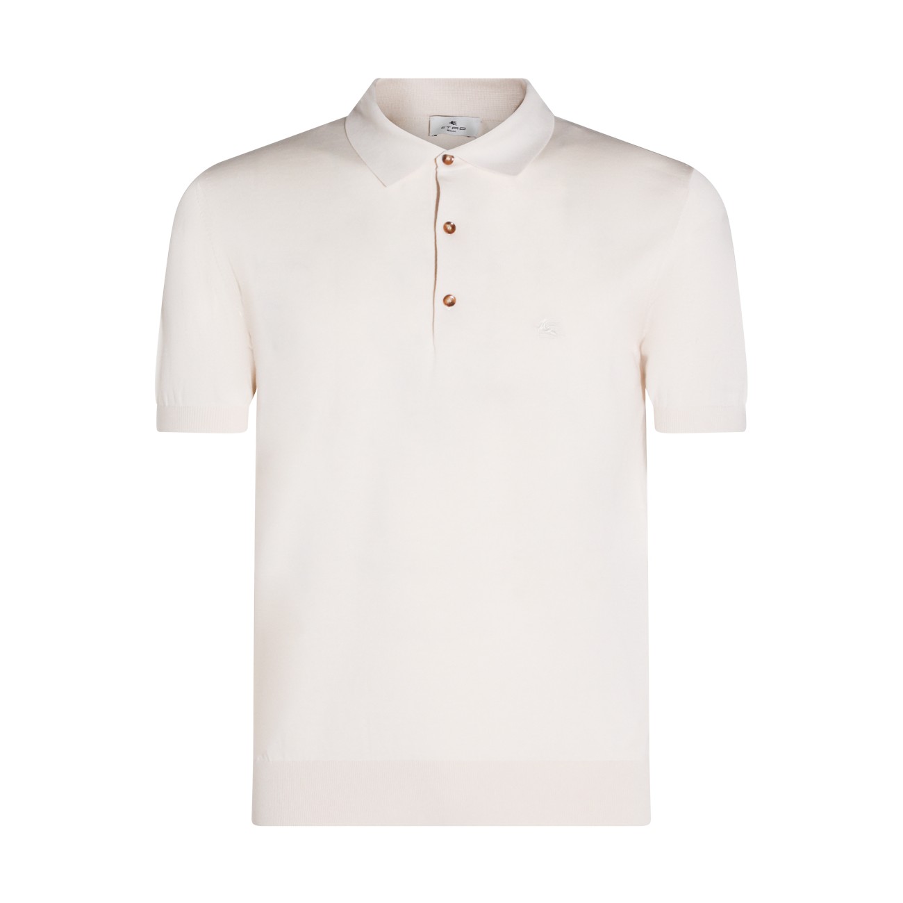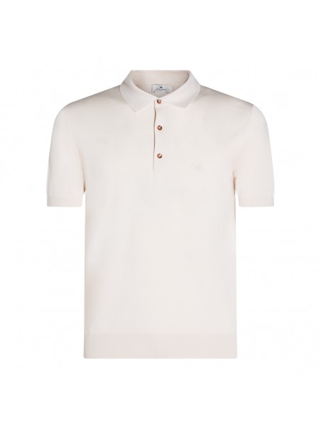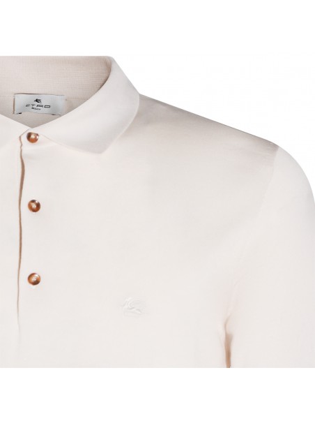 Cream cotton polo shirt from Etro featuring regular collar, button fastening, short sleeves, frontal embroidered logo and regular vestibility.