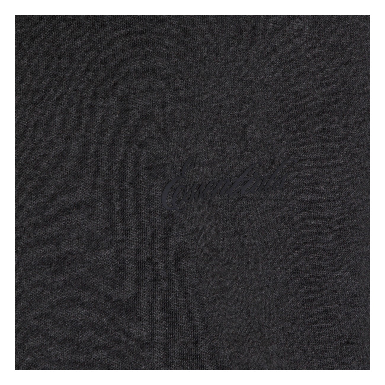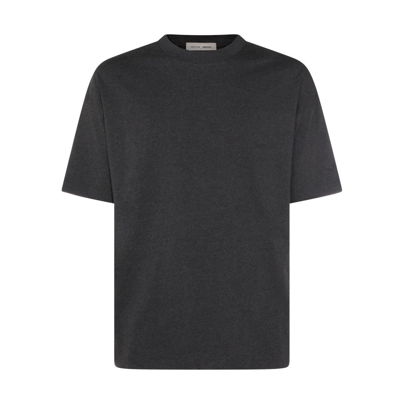 Dark grey cotton t-shirt from Fear Of God Essentials featuring rib-knit crewneck, short sleeves, embroidered script logo and regular fit.