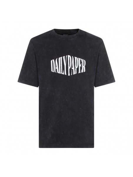 Black cotton t-shirt from Daily Paper featuring crew neck, short sleeves, frontal graphic logo stamp and oversize vestibility.