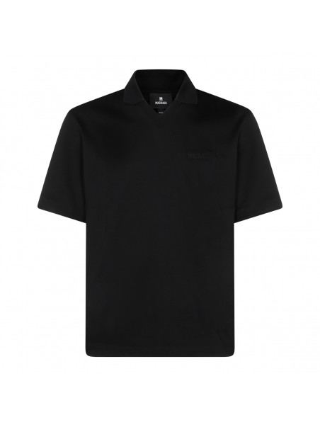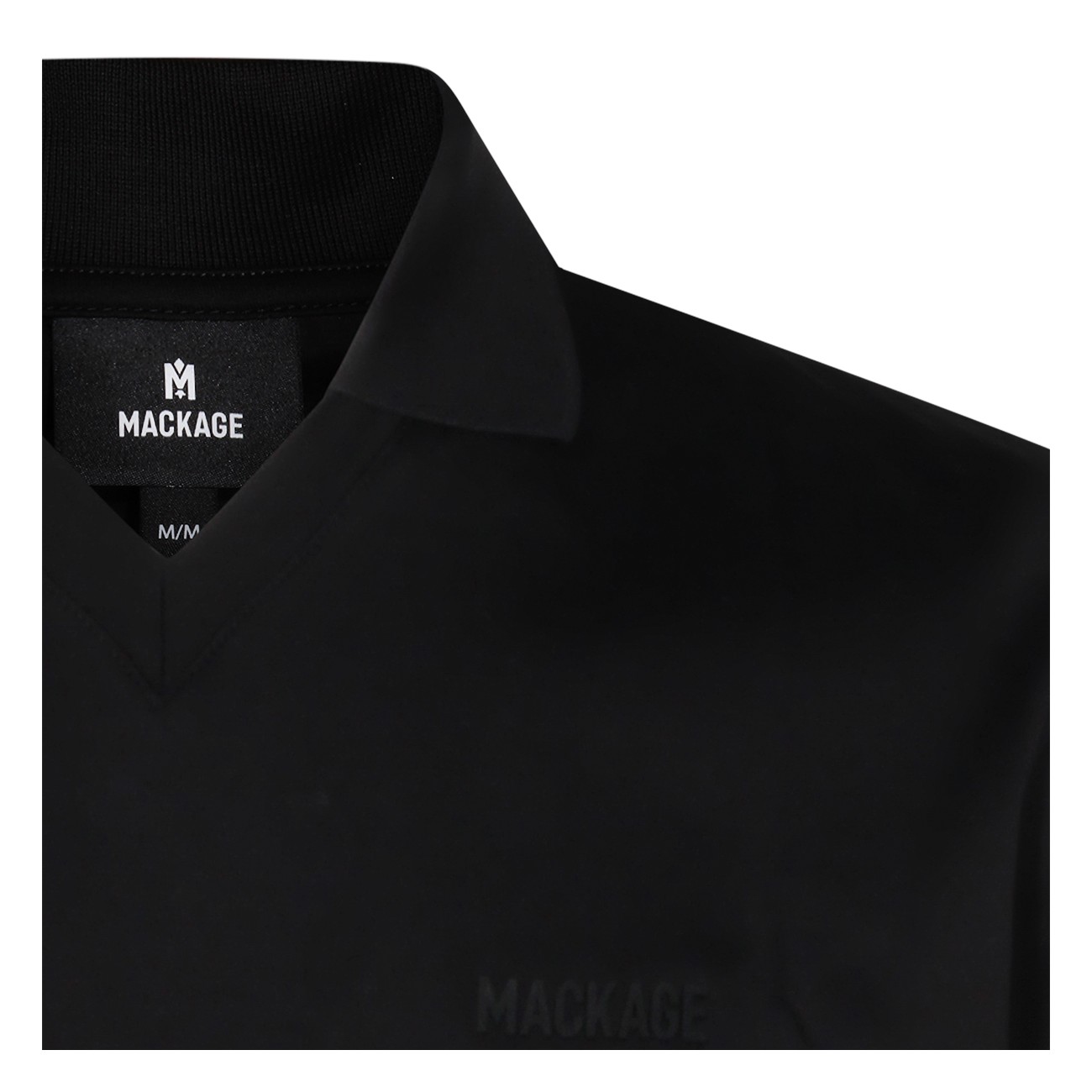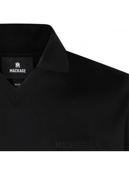 Black cotton polo shirt from Mackage featuring shirt collar, V-neckline, short sleeves, silicone printed logo and regular vestibility.