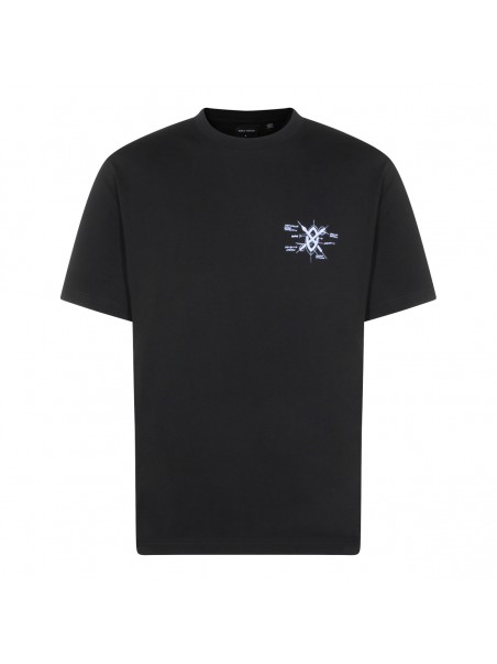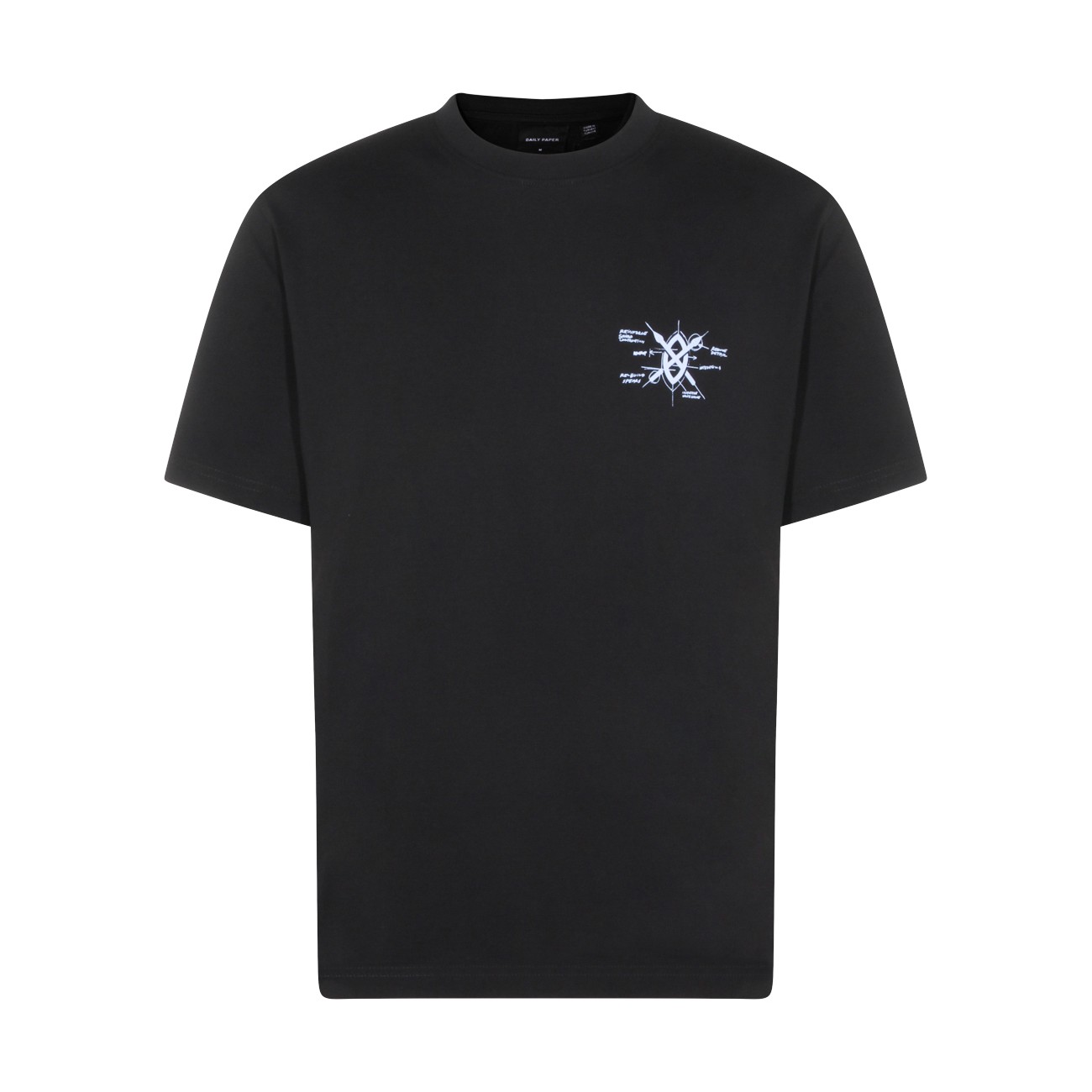 Black cotton T-shirt from Daily Paper featuring round neck, short sleeves, regular fit, straight hem and logo print at chest.
