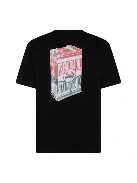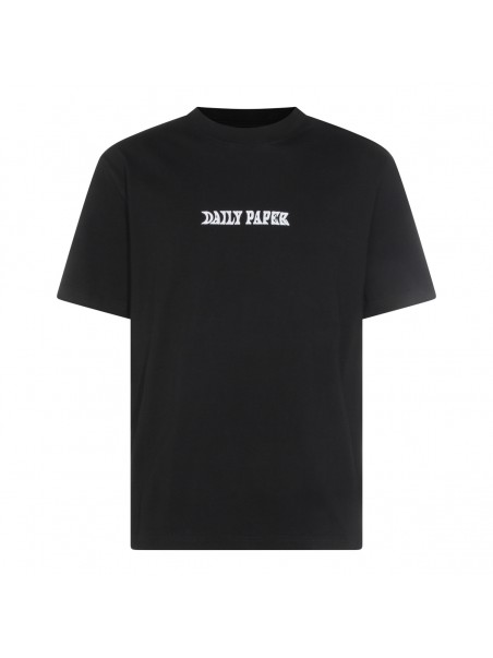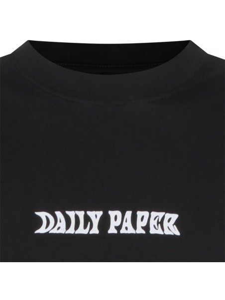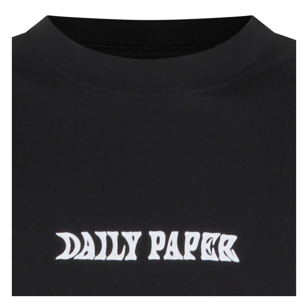 Black cotton T-Shirt from Daily Paper featuring round neck, short sleeves, straight hem and logo print at chest.