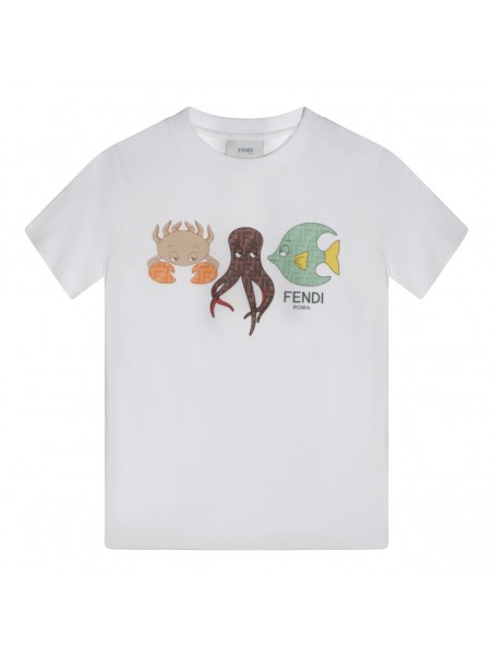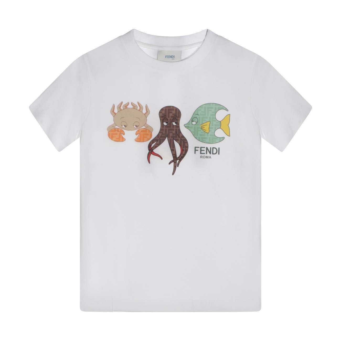 White cotton Animal Print T-Shirt from Fendi featuring round neck, straight hem, regular fit and animal print at front.