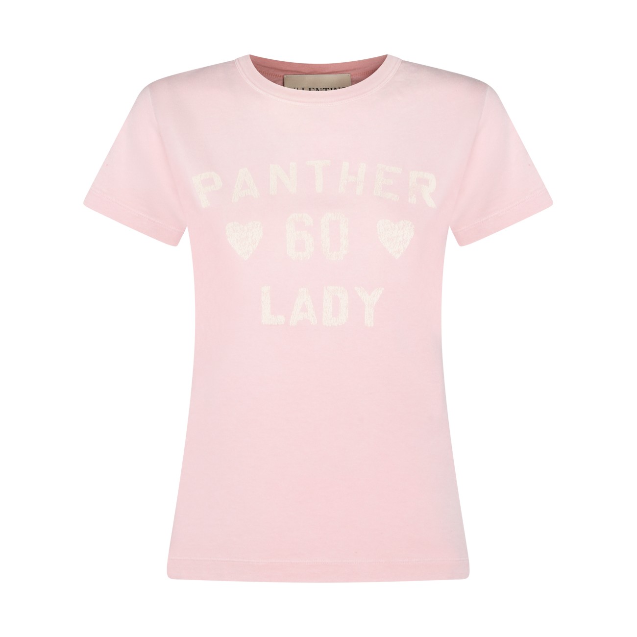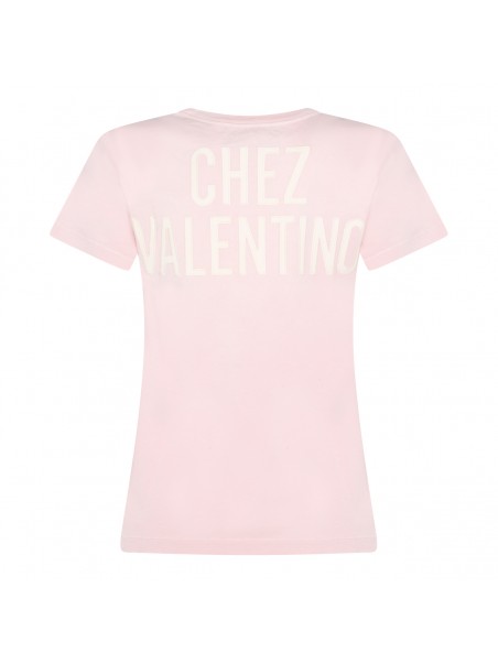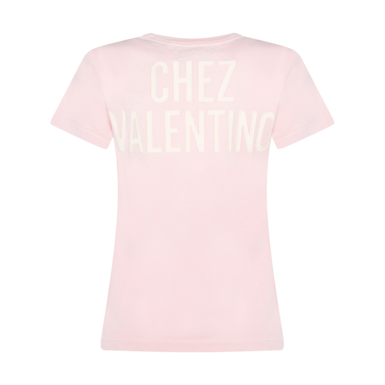 Neutral Rose cotton T-Shirt from Valentino featuring short sleeves, round neck, stretch fit, print at front and straight hem.