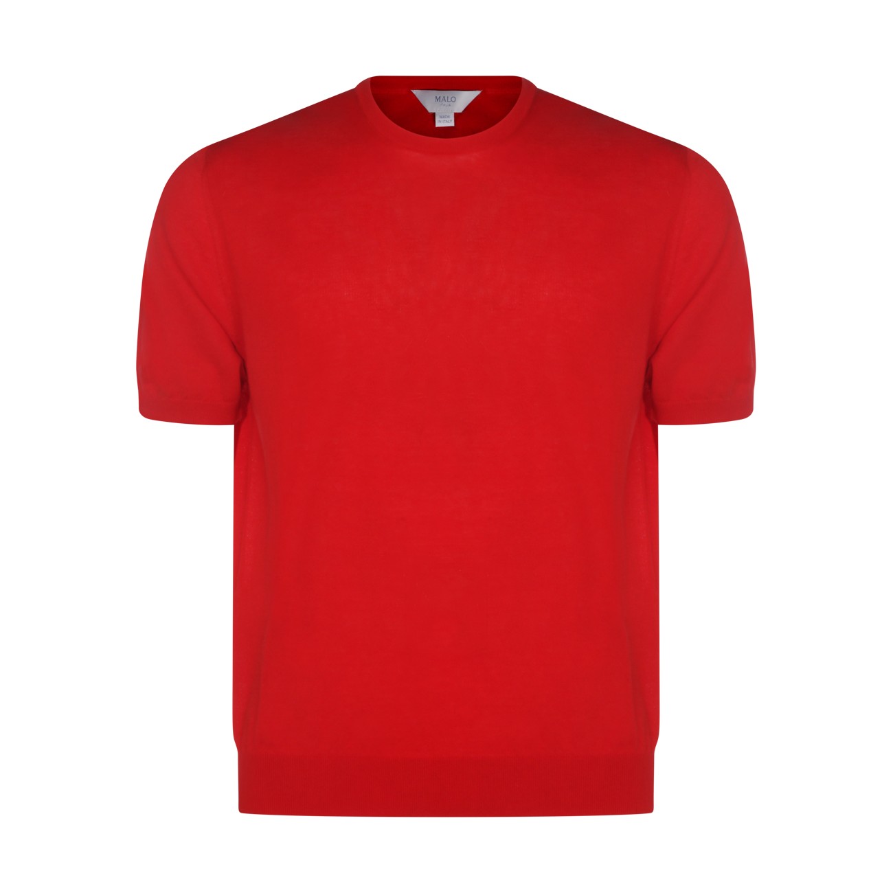 Red cotton t-shirt from Malo featuring round collar, short sleeves and regular vestibility.