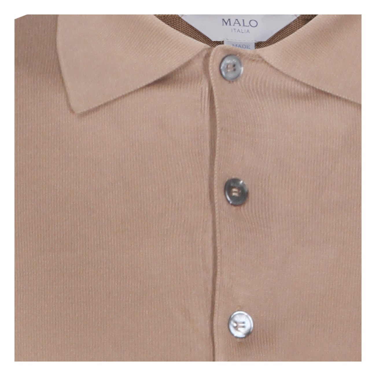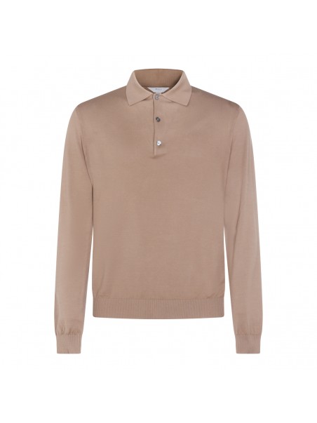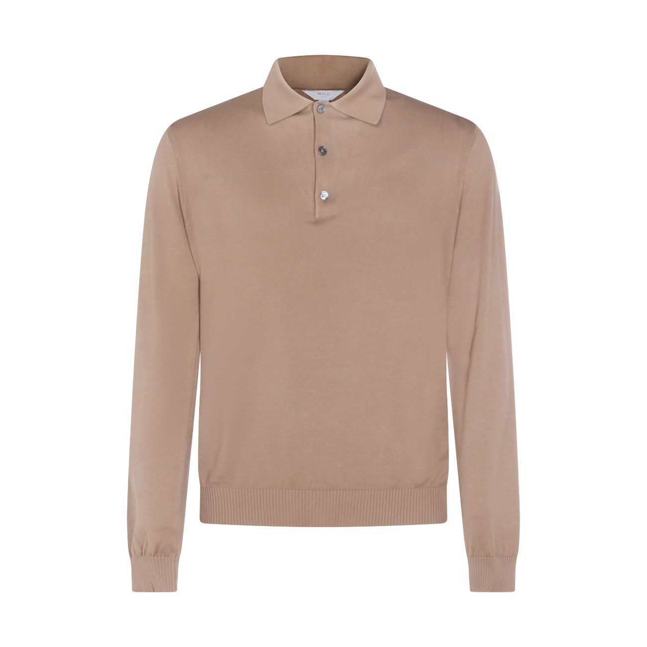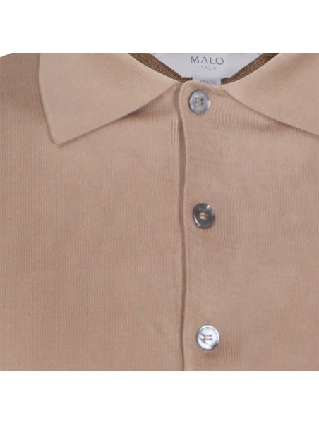 Light brown cotton polo shirt from Malo featuring long sleeves, polo shirt collar with buttons and regular vestibility.