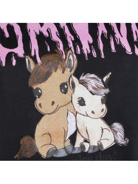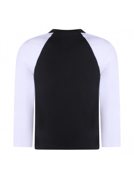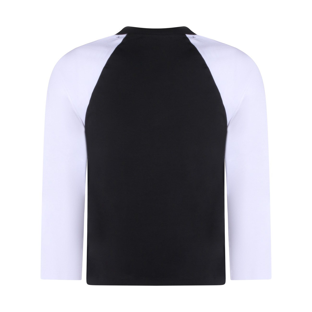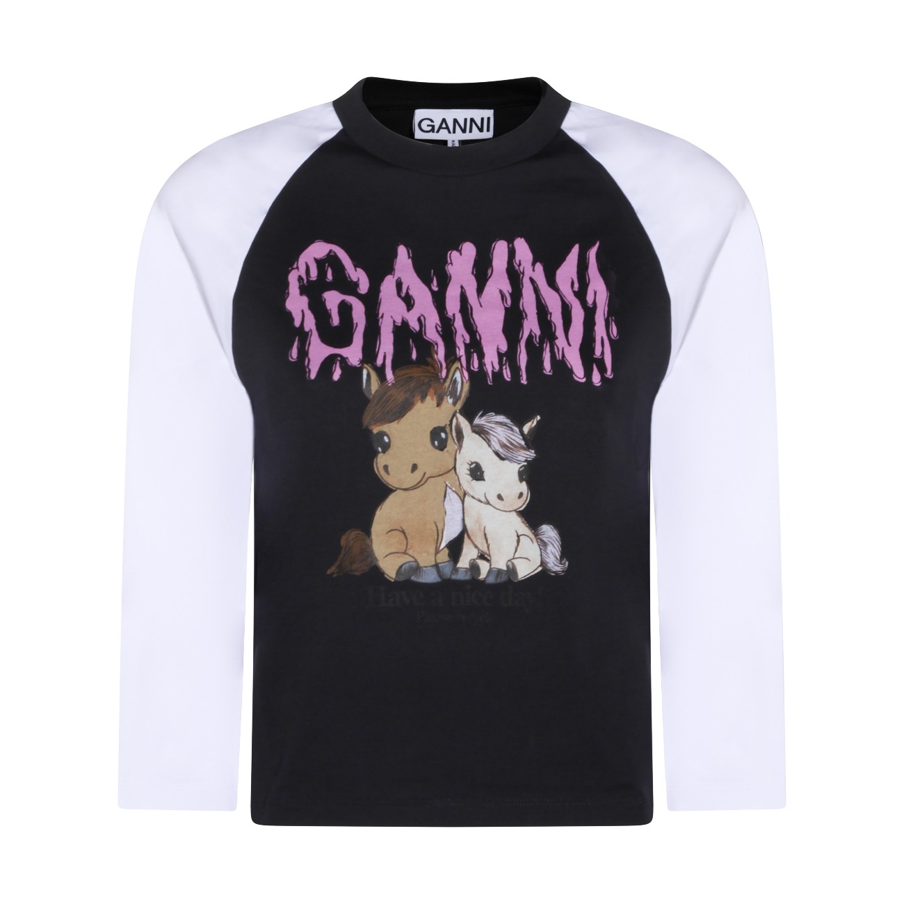 Phantom cotton T-Shirt from Ganni featuring long contrasted sleeves, round neck, straight hem and print at front with logo detail.