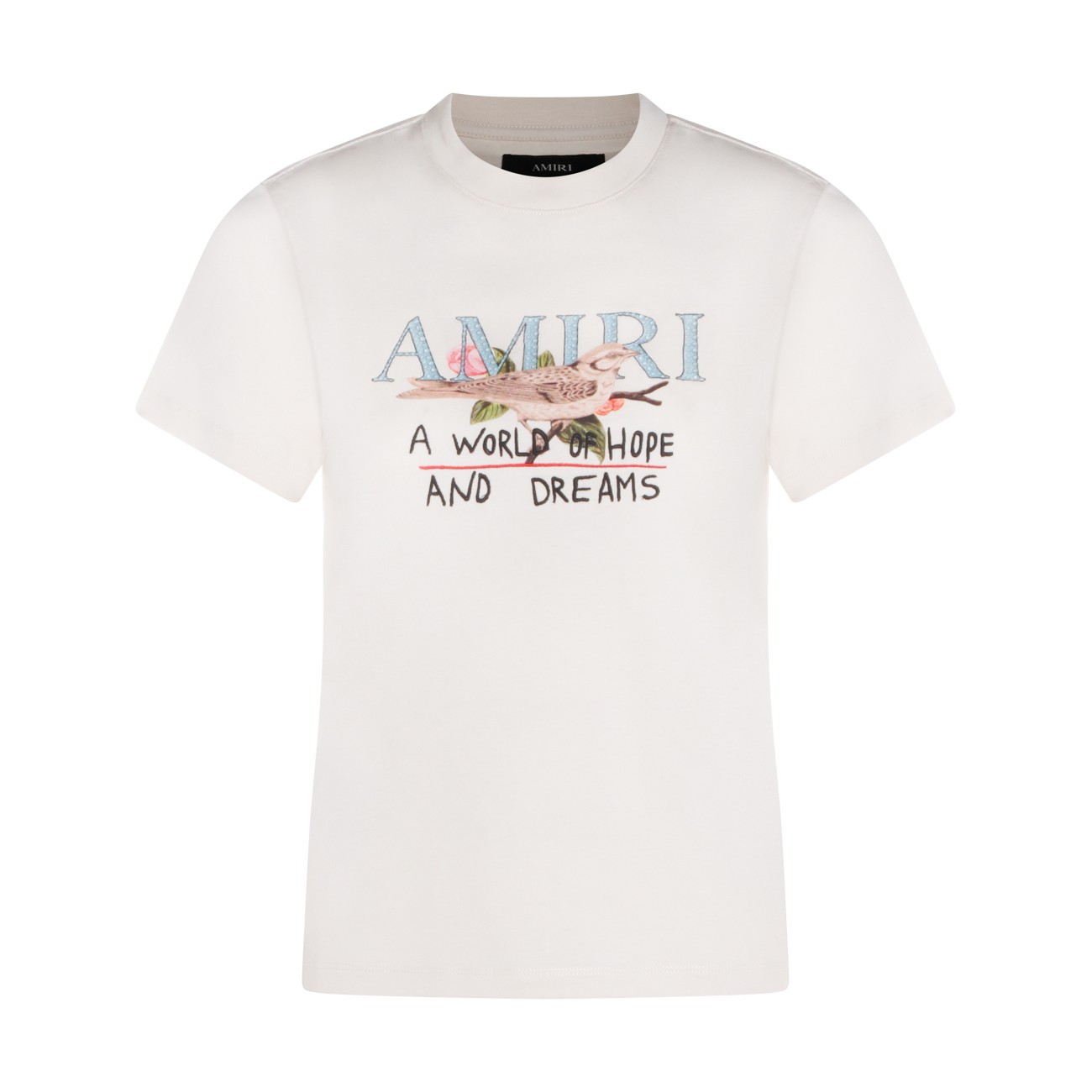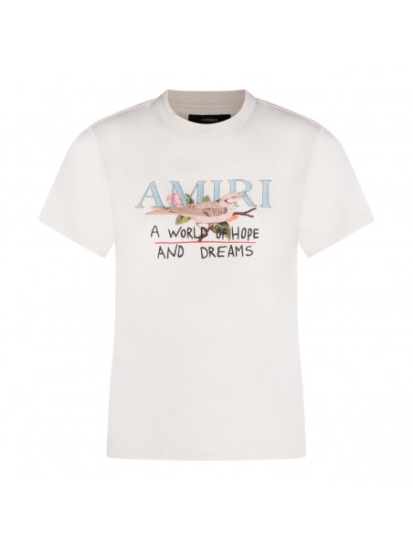 White cotton t-shirt from Amiri featuring round collar, short sleeves and frontal print.