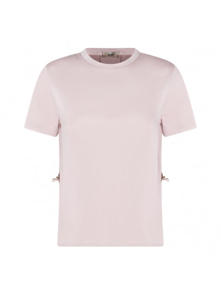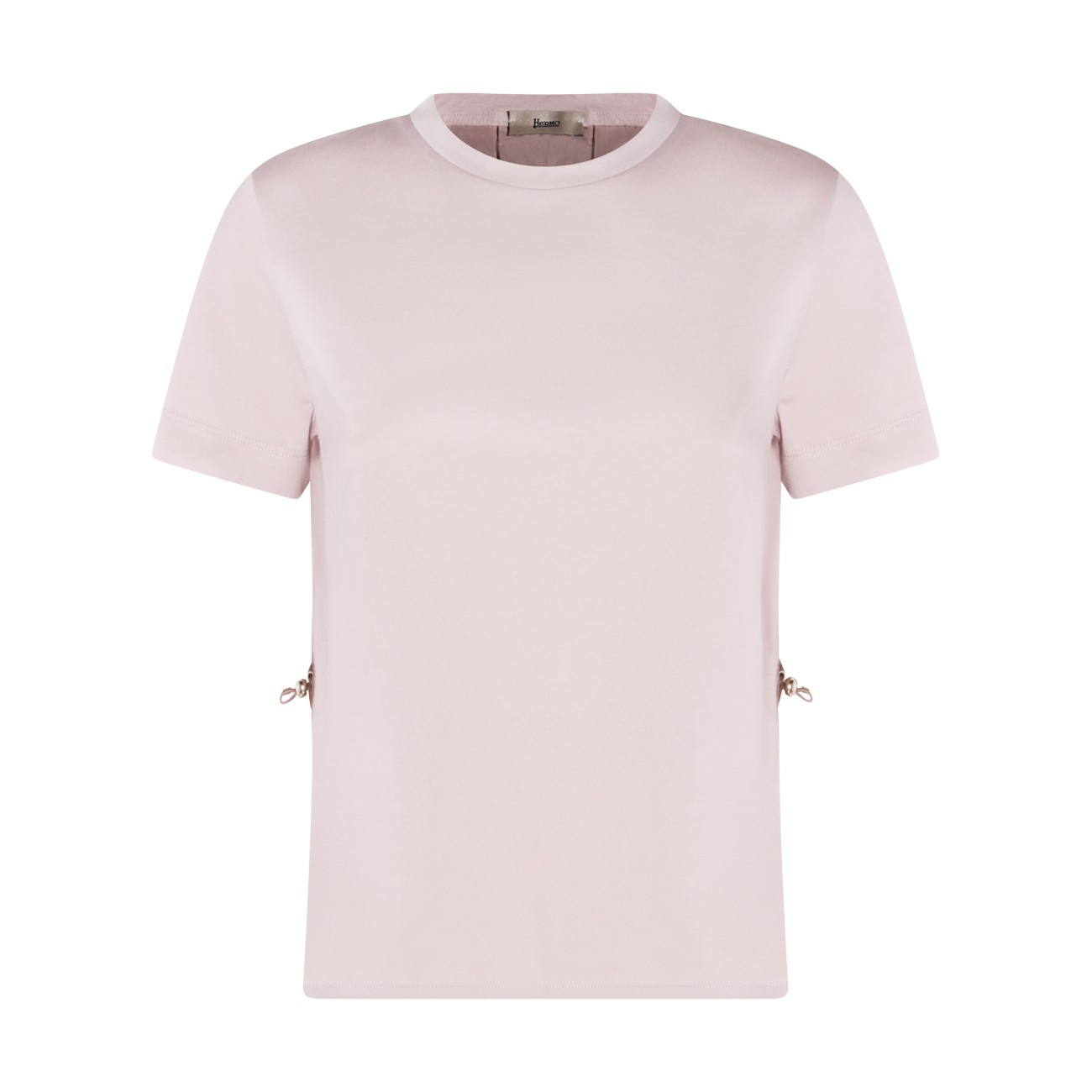 Pink cotton T-Shirt from Herno featruing short sleeves, round neck, bow details and regular fit.