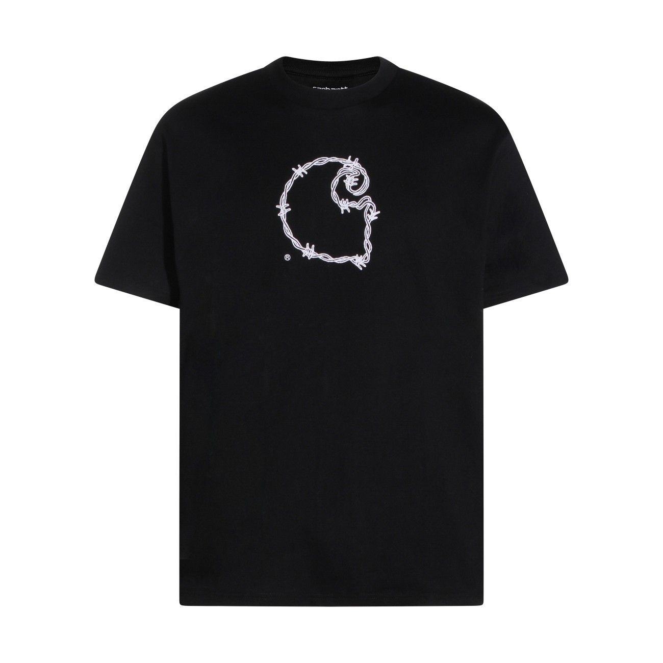 Black cotton t-shirt from Carhartt Wip featuring short sleeves, round collar, frontal logo stamp and regular vestibility.