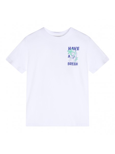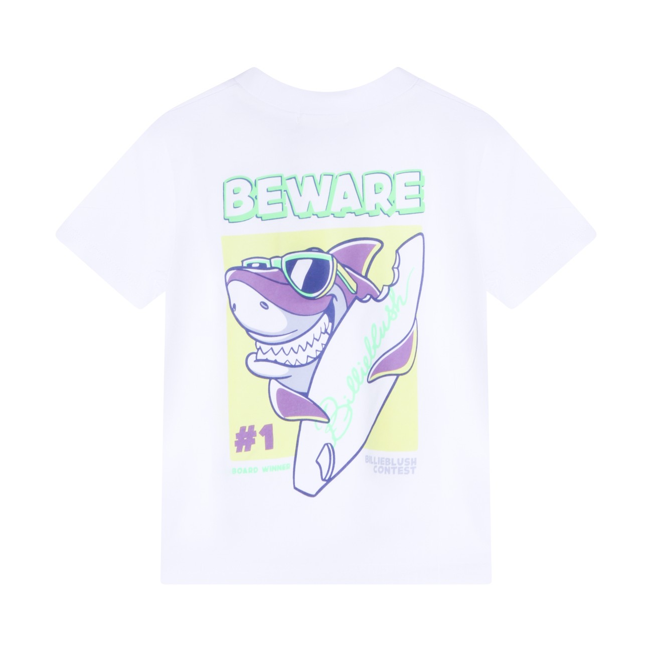 White cotton t-shirt from Billieblush featuring short sleeves, round collar, frontal and back stamp and regular fit.