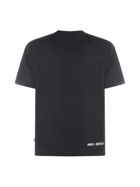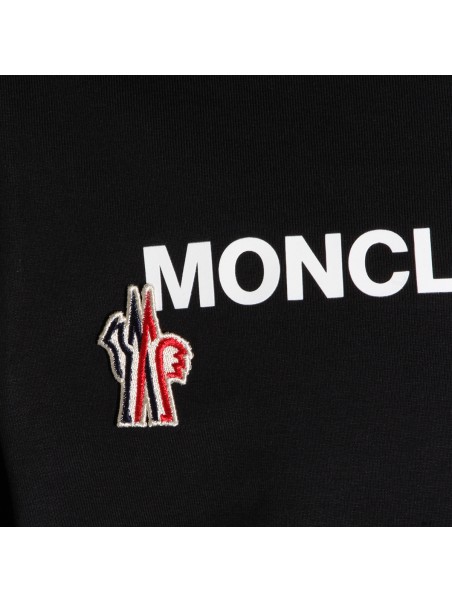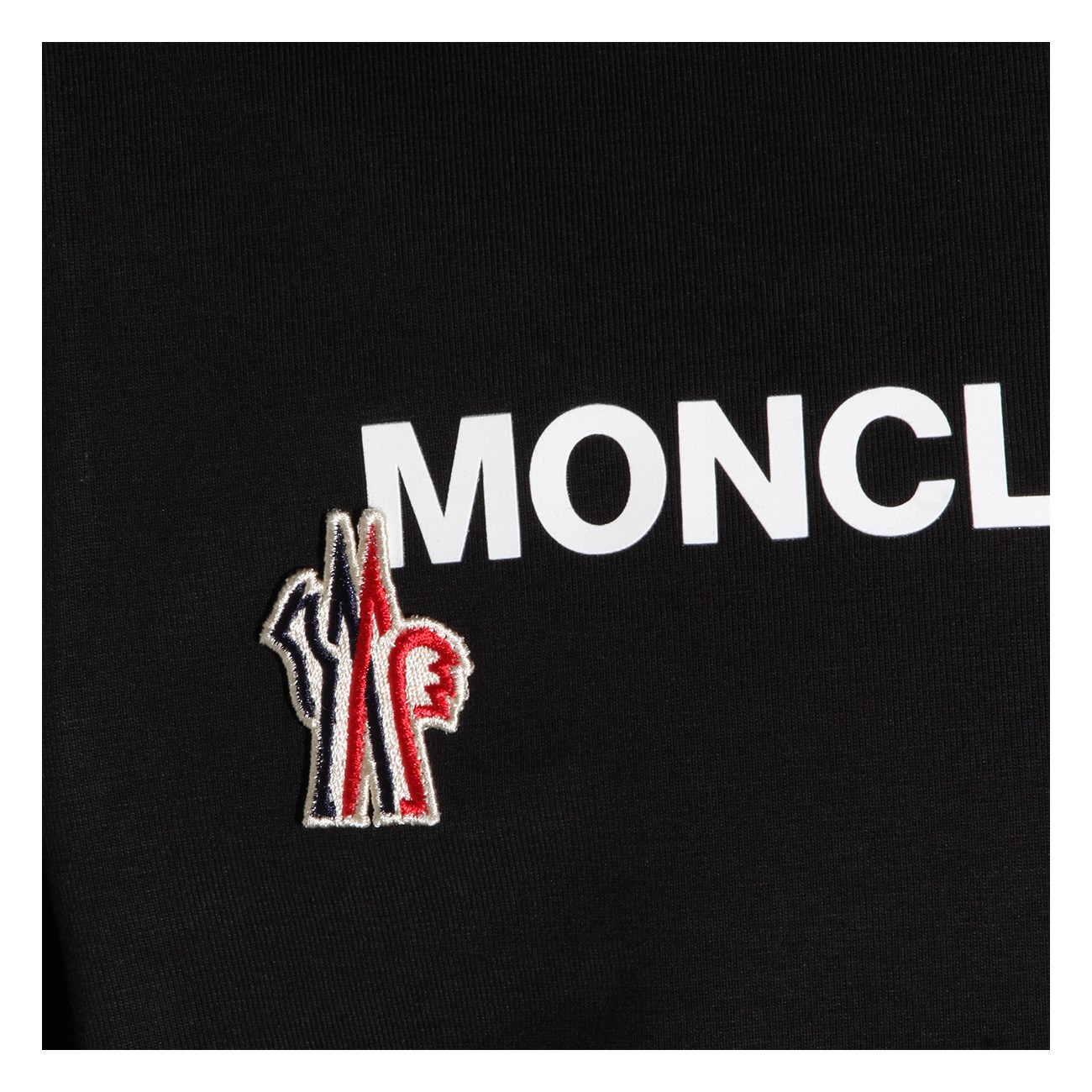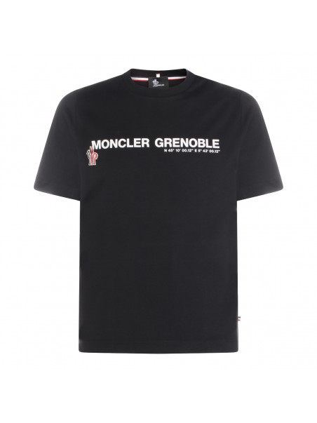 Black cotton t-shirt from Moncler Grenoble featuring round collar, short sleeves and logo print.