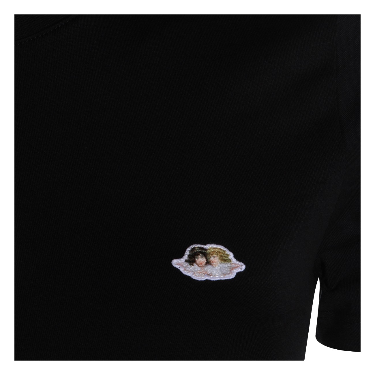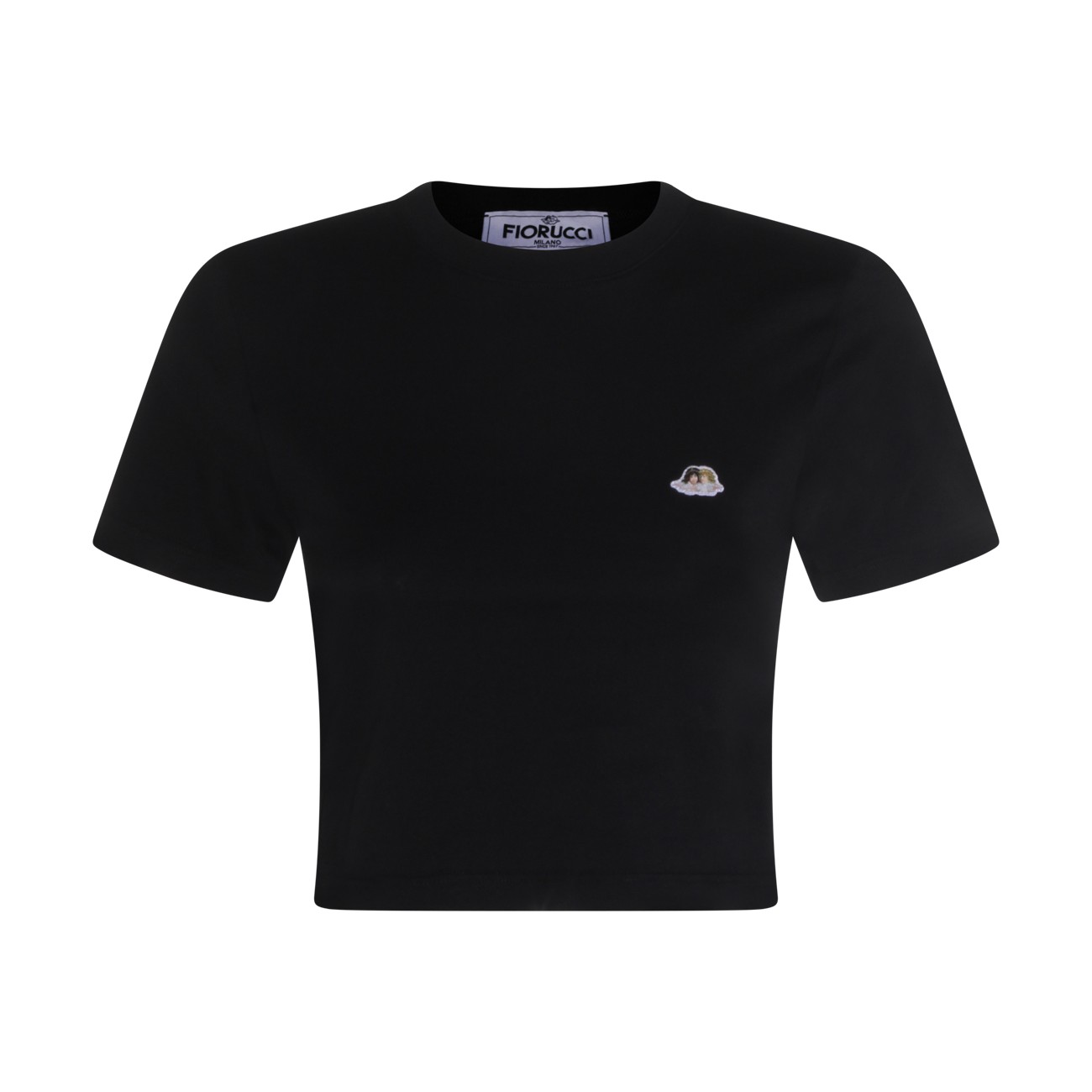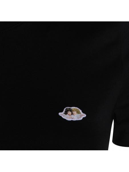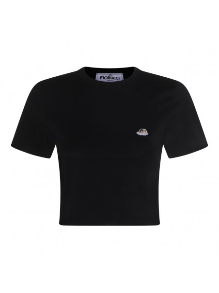 Black cotton t-shirt from Fiorucci featuring round collar, short sleeves and frontal logo patch.