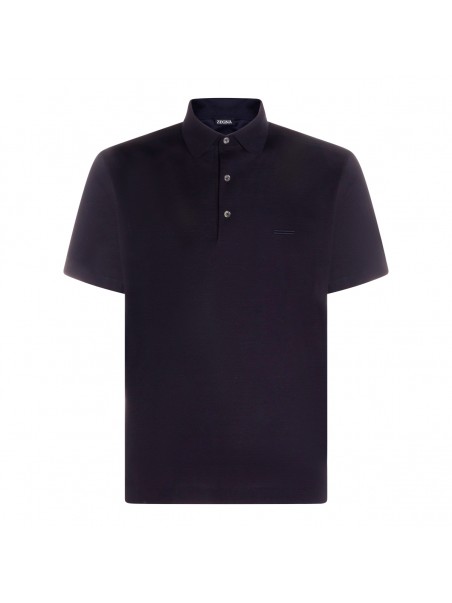 Navy cotton polo shirt from Zegna featuring short sleeves, polo shirt collar, buttons fastening and regular vestibility.