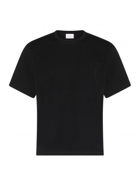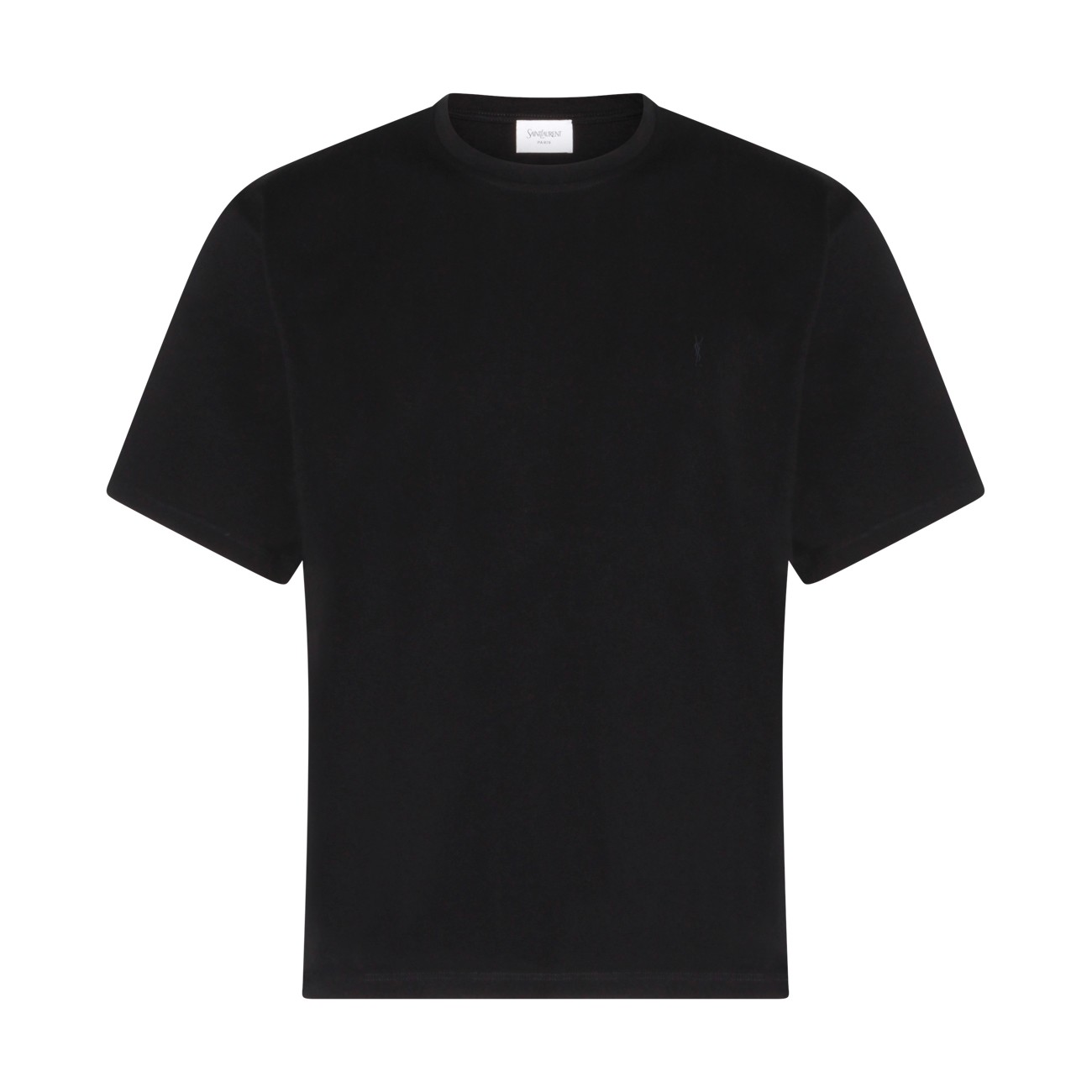 Black cotton t-shirt from Saint Laurent featuring round collar, short sleeves, frontal logo and regular vestibility.