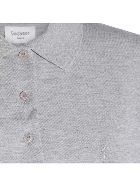 Grey cotton polo shirt from Saint Laurent featuring short sleeves, polo shirt collar, buttons fastening, frontal logo and regular vestibility.