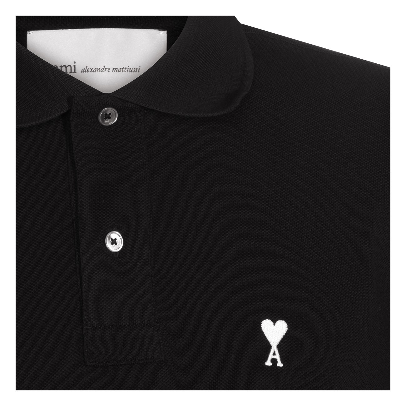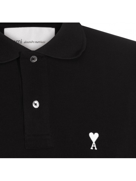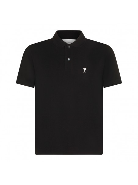Black cotton polo shirt from Ami Paris featuring polo shirt collar, short sleeves, logo and regular vestibility.