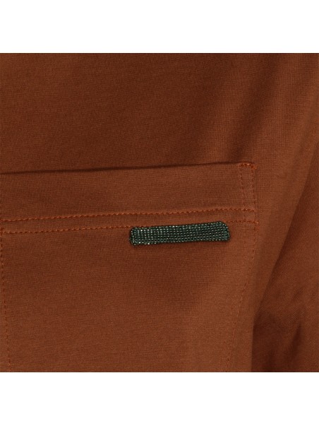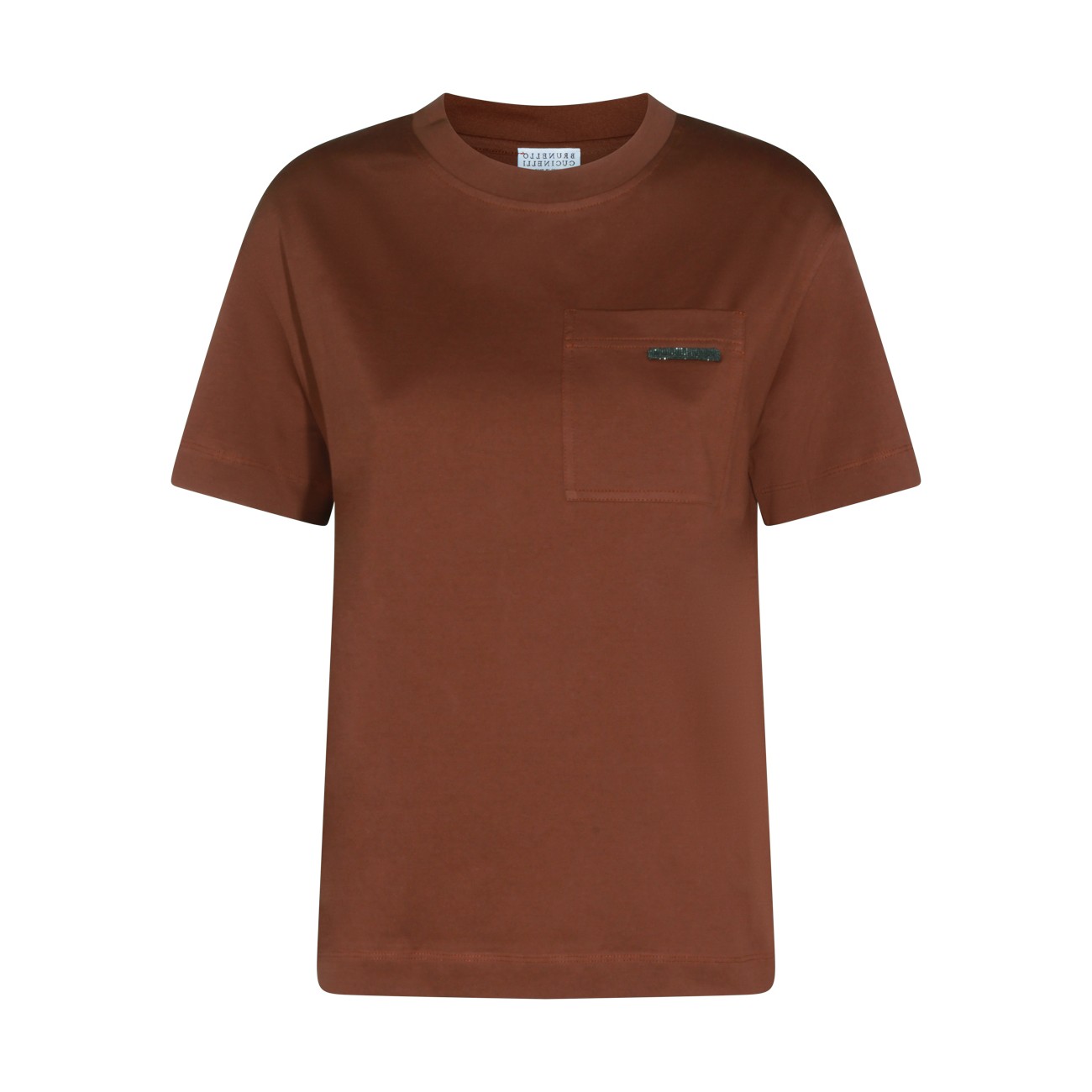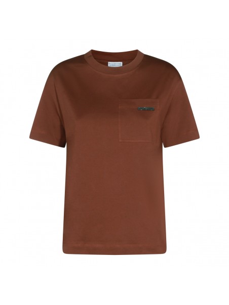 Brown cotton t-shirt from Brunello Cucinelli featuring round collar, short sleeves, pocket and regular vestibility.