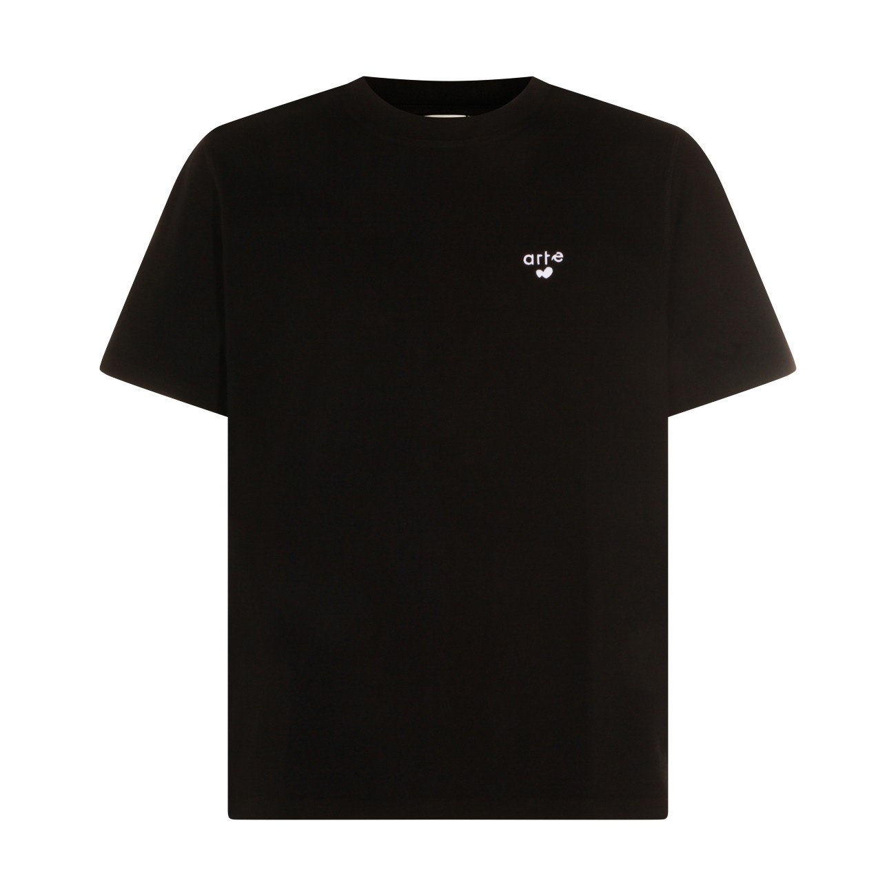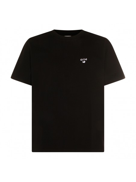 Black cotton t-shirt from Arte Antwerp featuring round collar, short sleeves, frontal print and regular vestibility.