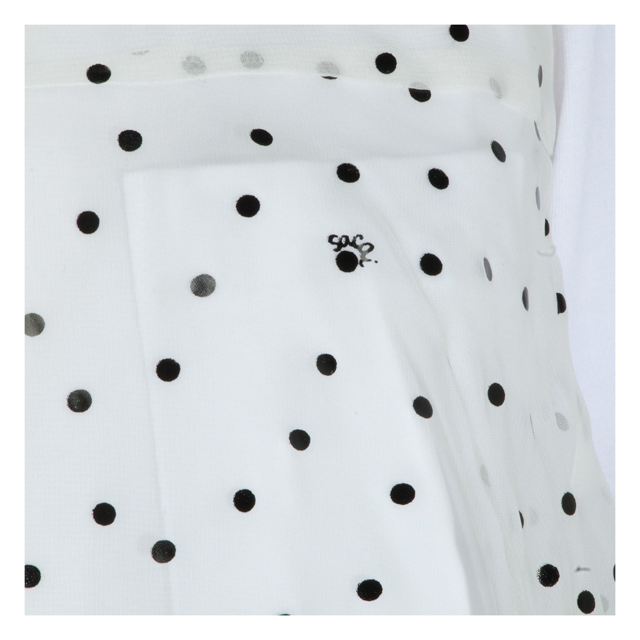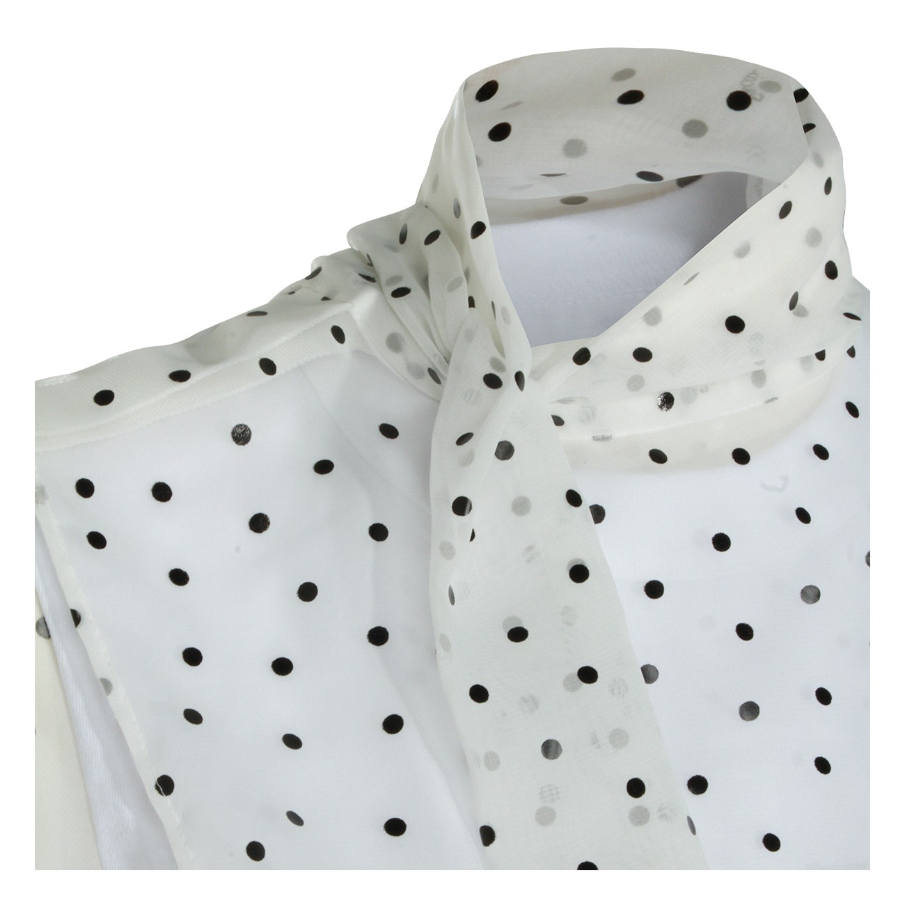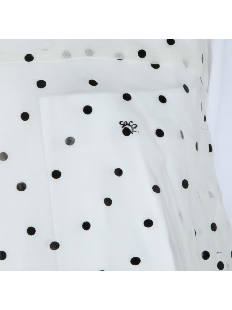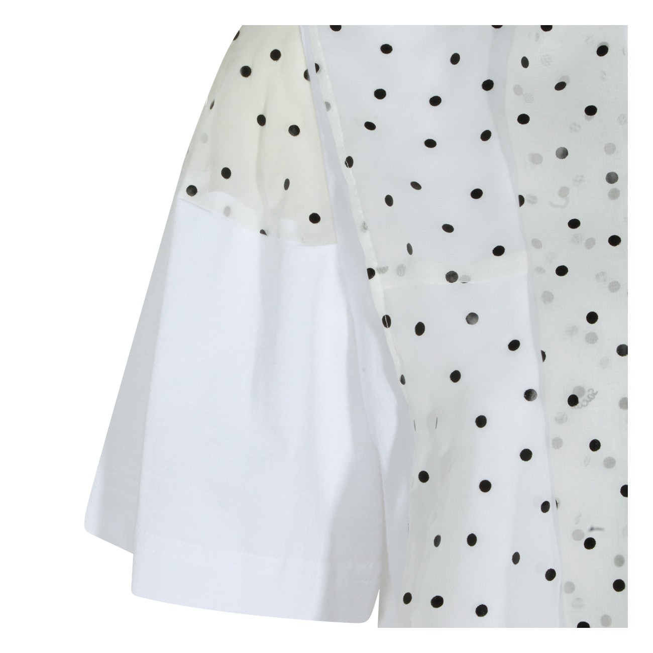 White cotton t-shirt from Sacai featuring high collar, short sleeves, polka dots and flared vestibility.