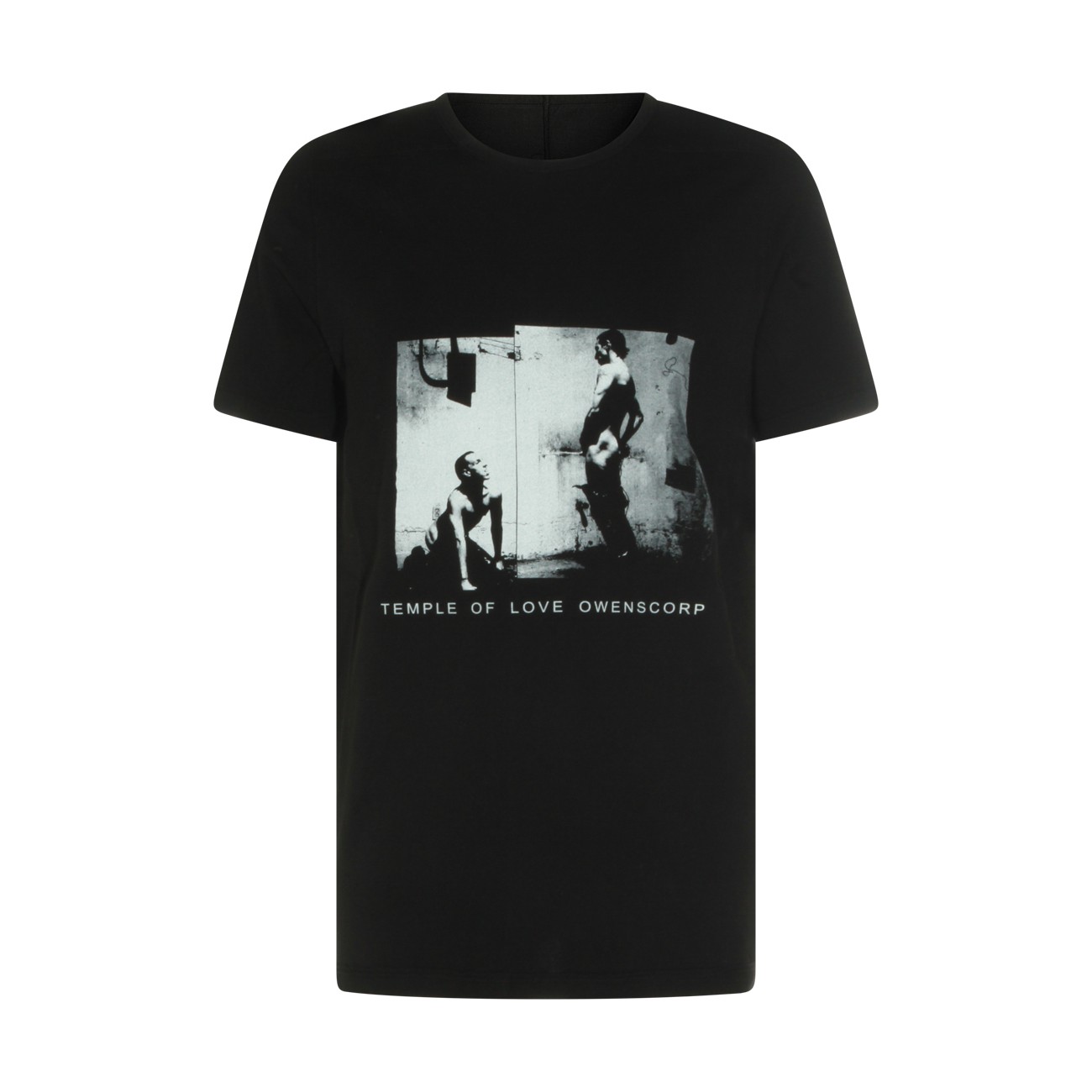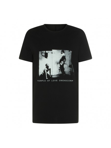 Black cotton t-shirt from Rick Owens Drkshdw featuring round collar, short sleeves, frontal print and regular vestibility.