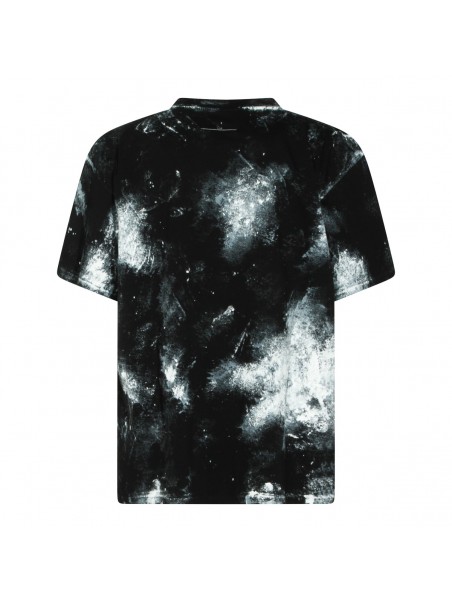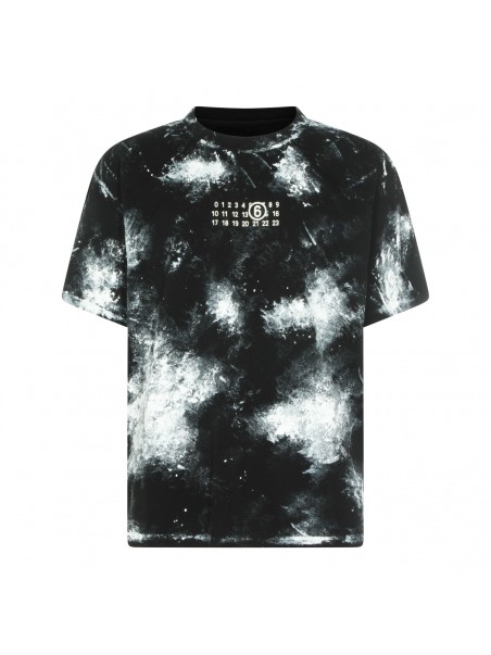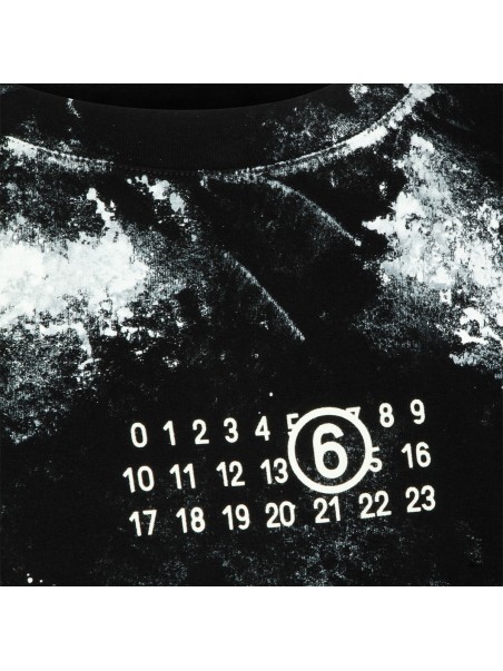 Black cotton t-shirt from Mm6 Maison Margiela featuring round collar, short sleeves, frontal logo detail and print.