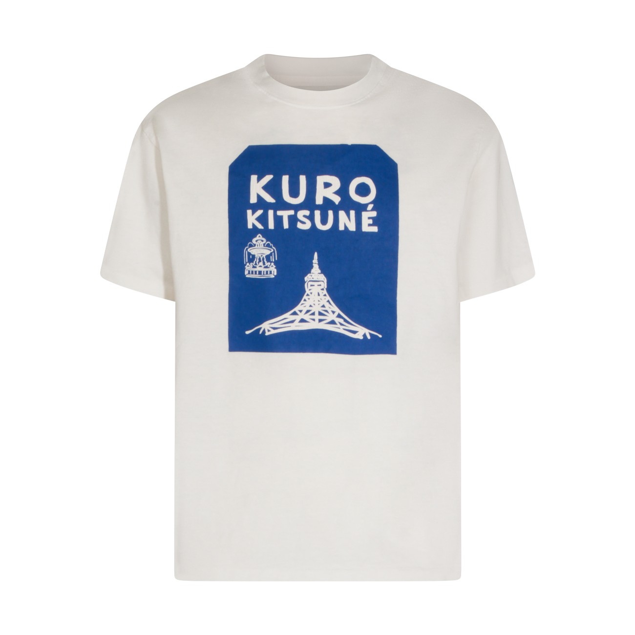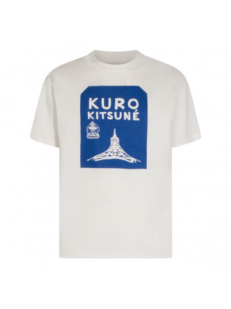 White cotton t-shirt from Maison Kitsune featuring round collar, short sleeves, frontal print and regular vestibility.