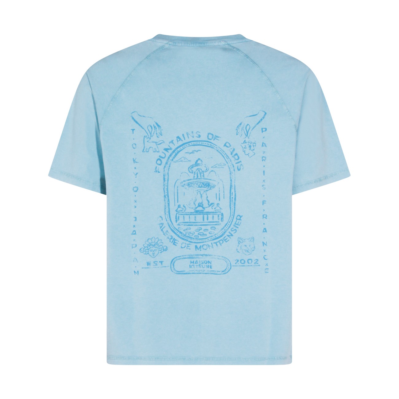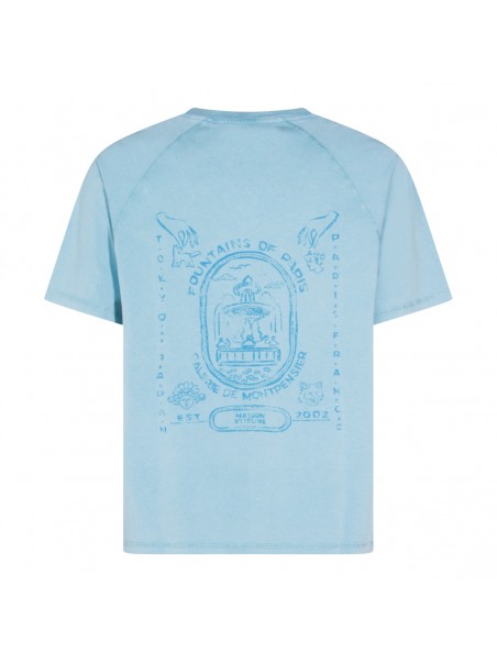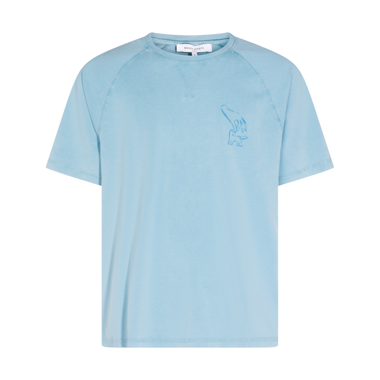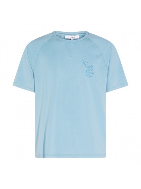 Blue faded cotton t-shirt from Maison Kitsune featuring short sleeves, round collar, frontal logo at chest, back stamp and regular vestibility.