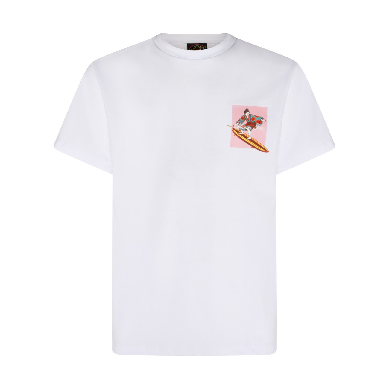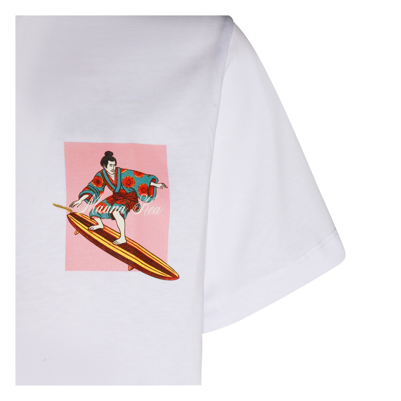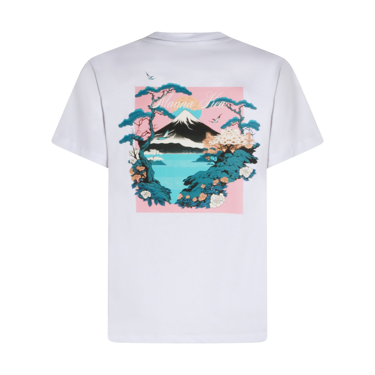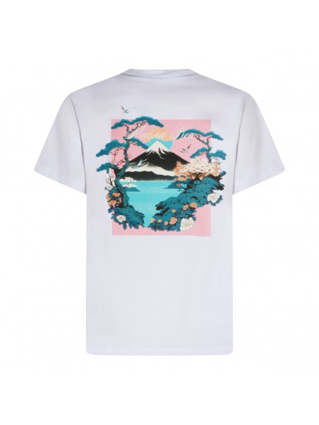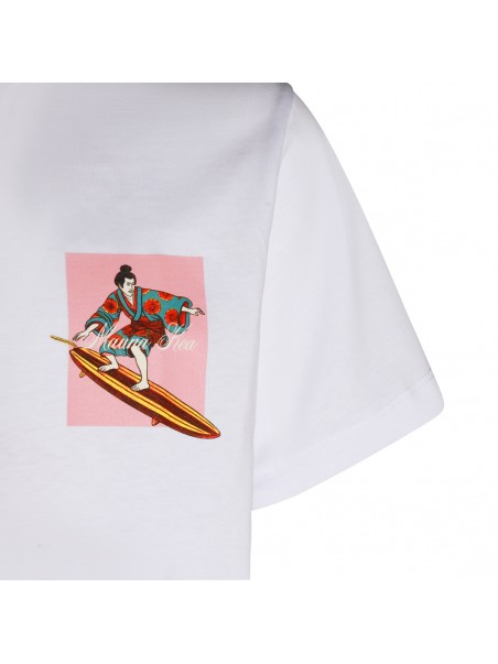White cotton printed T-Shirt from Mauna-Kea featuring short sleeves, round neck, print at chest and print at back.