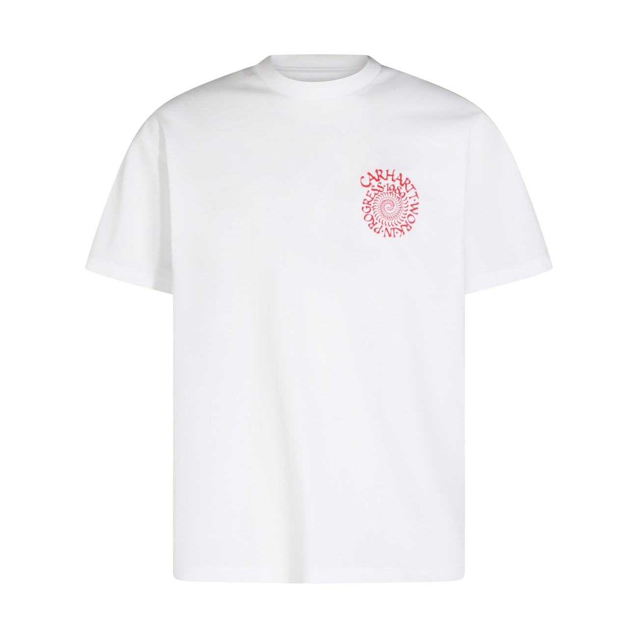 White cotton T-Shirt from Carhartt WIP featuring short sleeves, round neck, straight hem and logo details at chest.