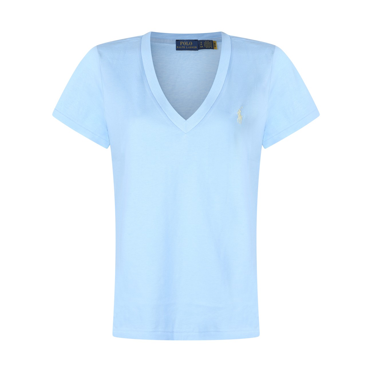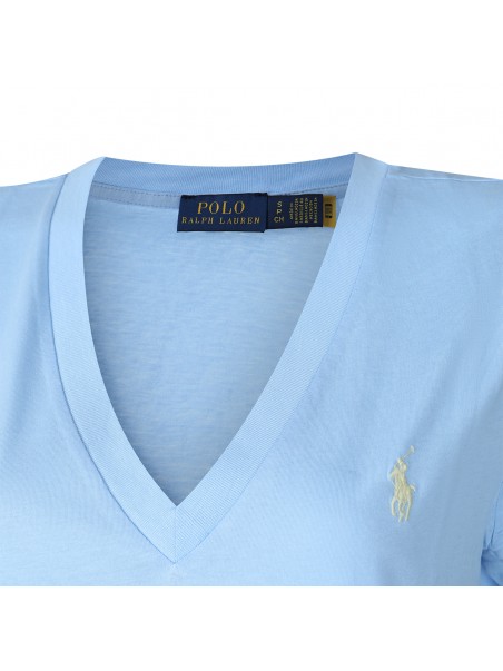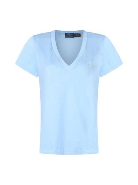 Light blue cotton polo shirt from Polo Ralph Lauren featuring short sleeves, embroidered logo at chest, half button closure and regular fit.
