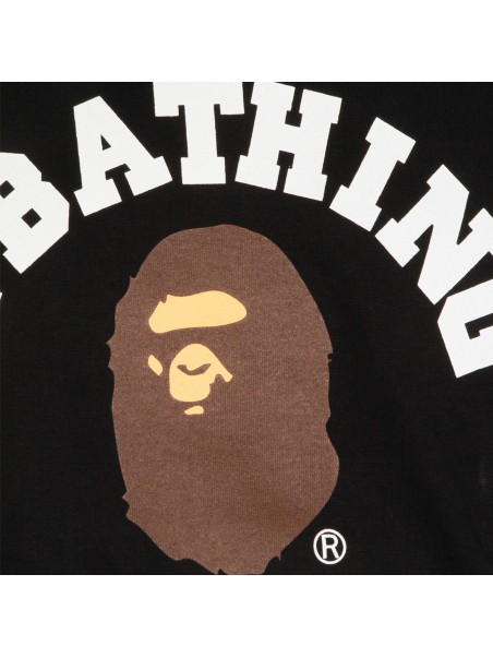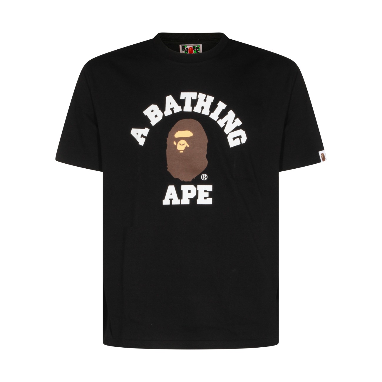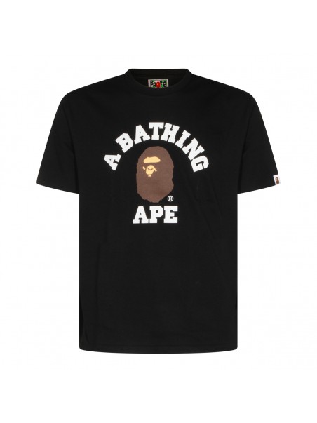 Black cotton t-shirt from Bape featuring round collar, short sleeves and frontal print.