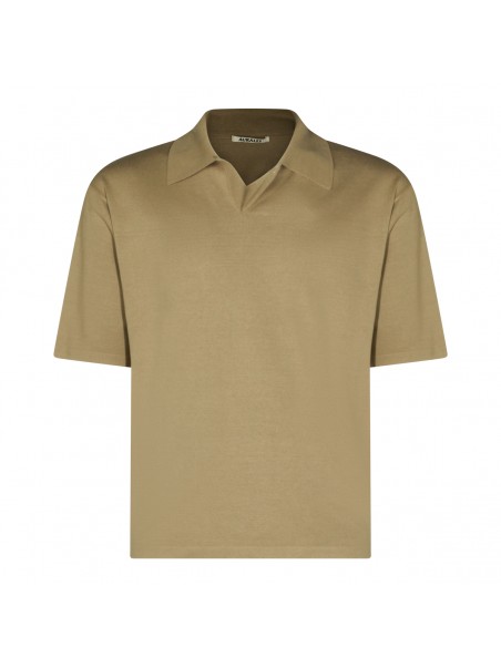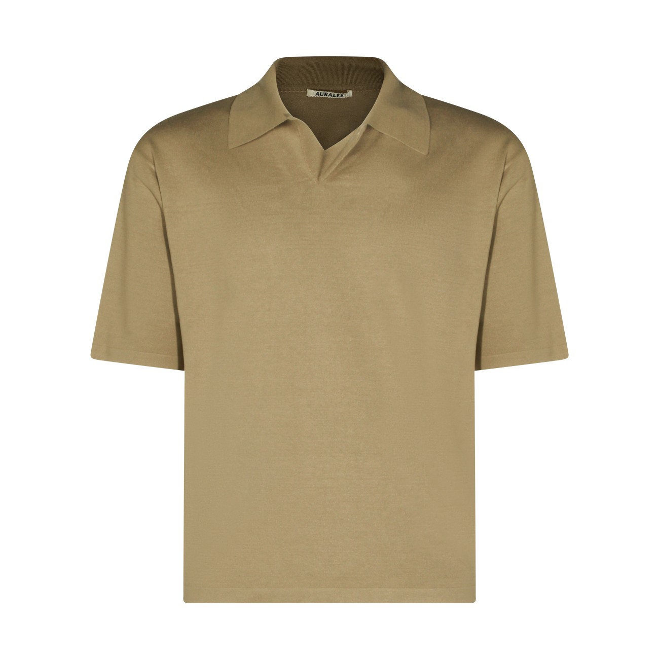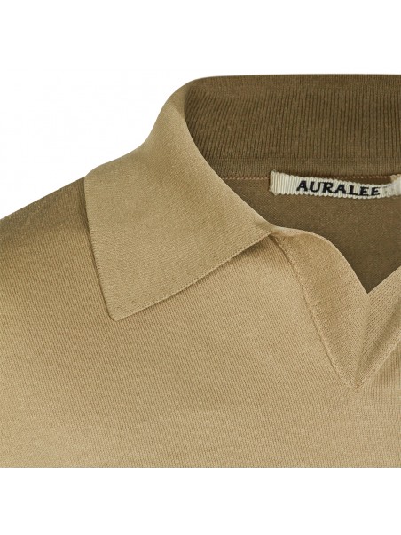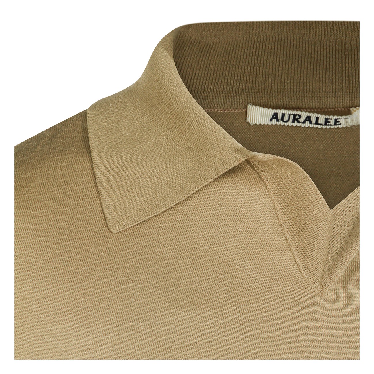 Beige silk polo shirt from Auralee featuring polo shirt collar, short sleeves and regular vestibility.