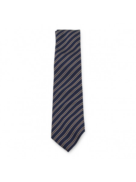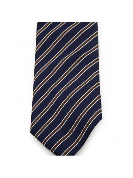 Dark navy silk tie from Zegna featuring all over pattern and logo patch.