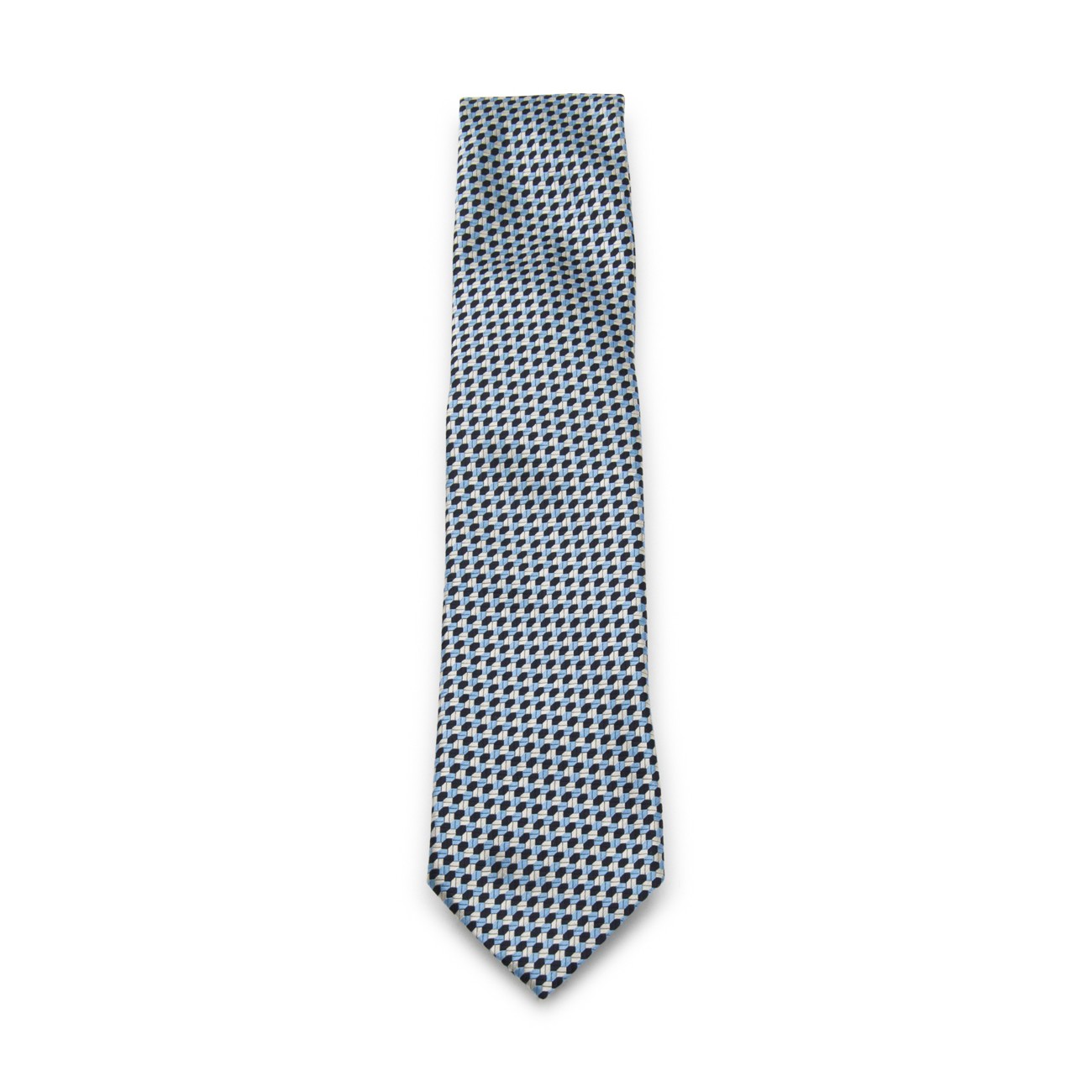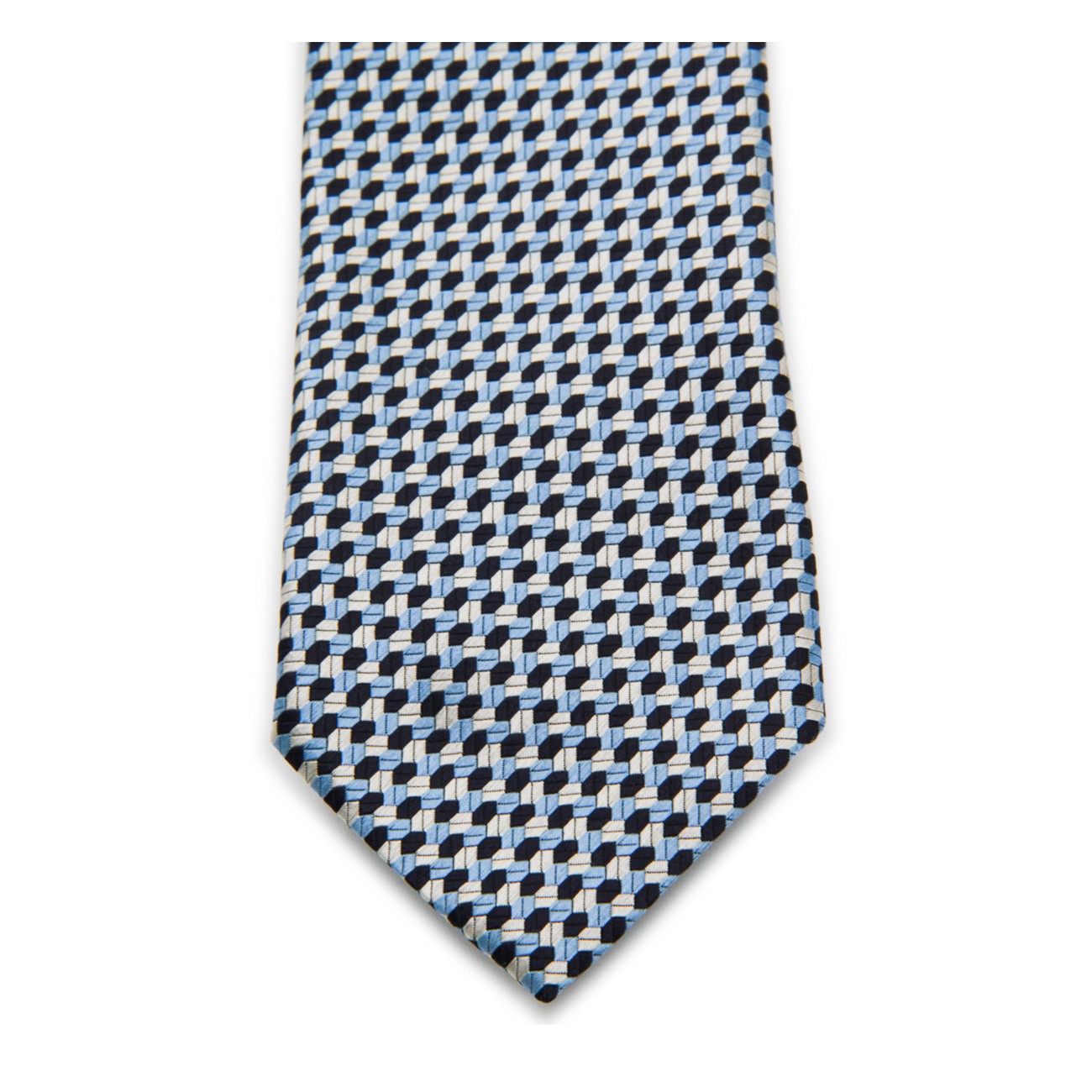 Light blue and white silk tie from Zegna featuring all over pattern and logo patch.