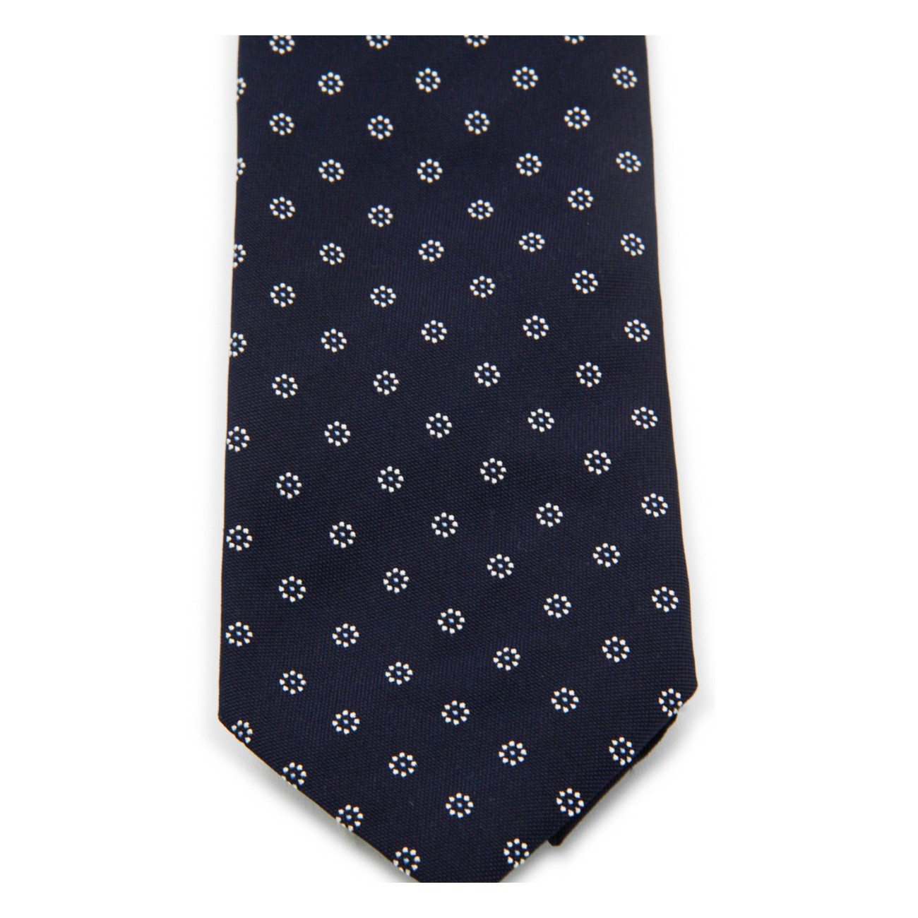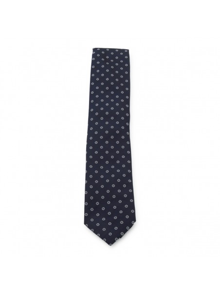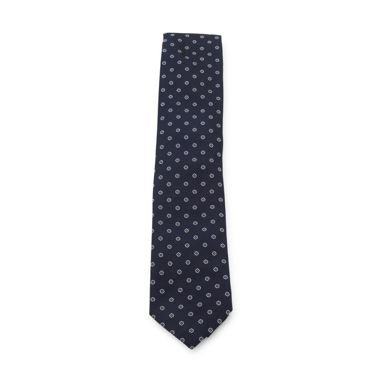 Navy silk tie from Zegna featuring all-over print, silk, logo and pointed tip.