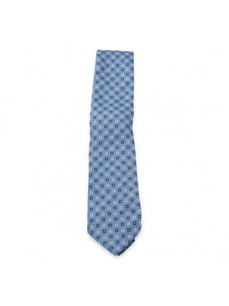 Light blue silk tie from Zegna featuring all-over print, silk, logo and pointed tip.
