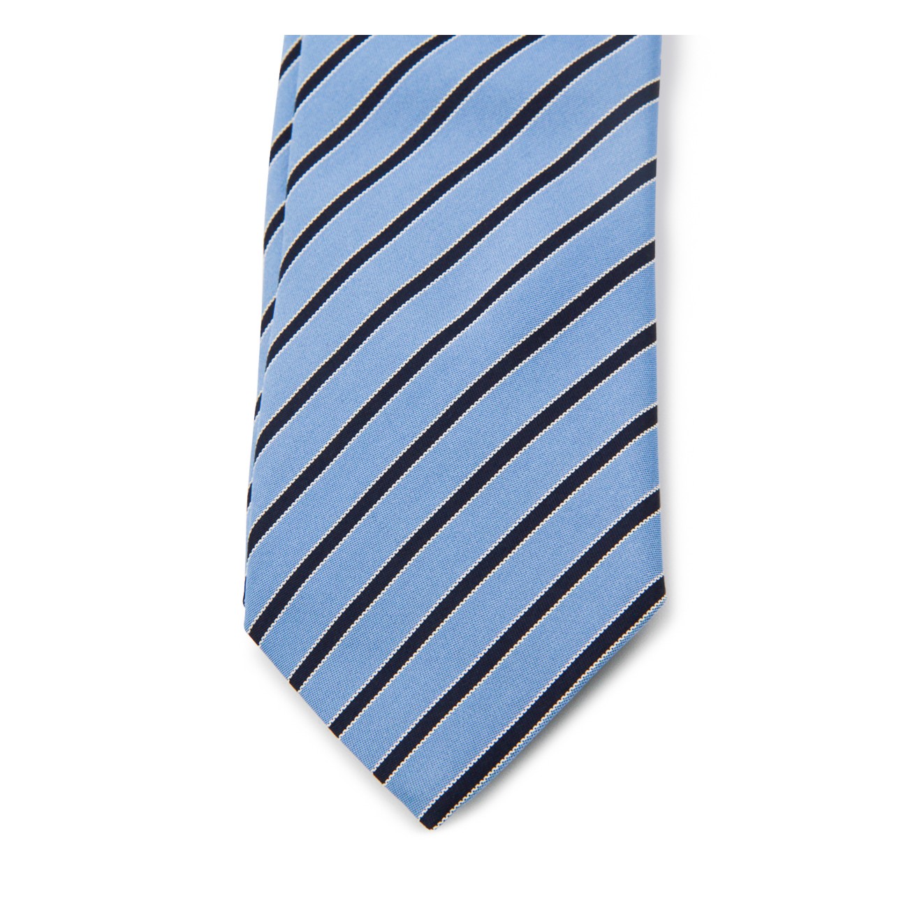 Light blue silk tie from Zegna featuring all over pattern and logo patch.