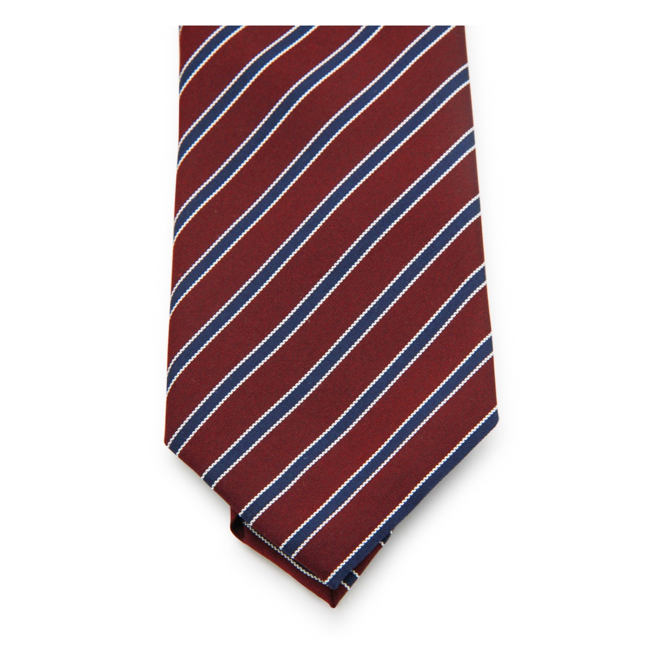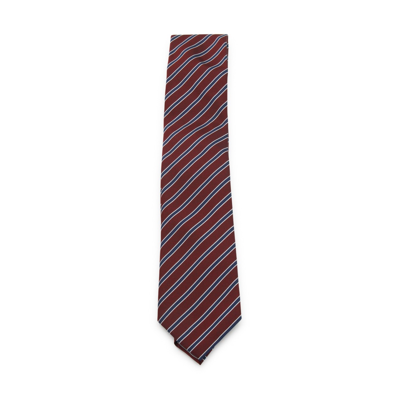 Dark red silk tie from Zegna featuring all over pattern and logo patch.