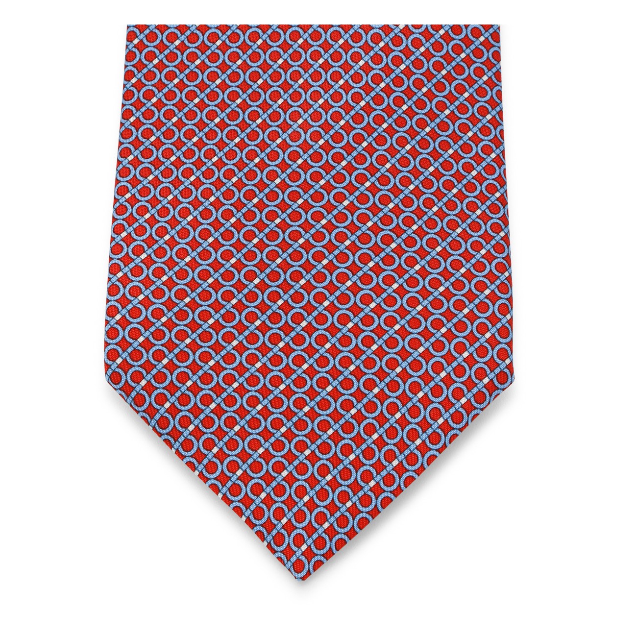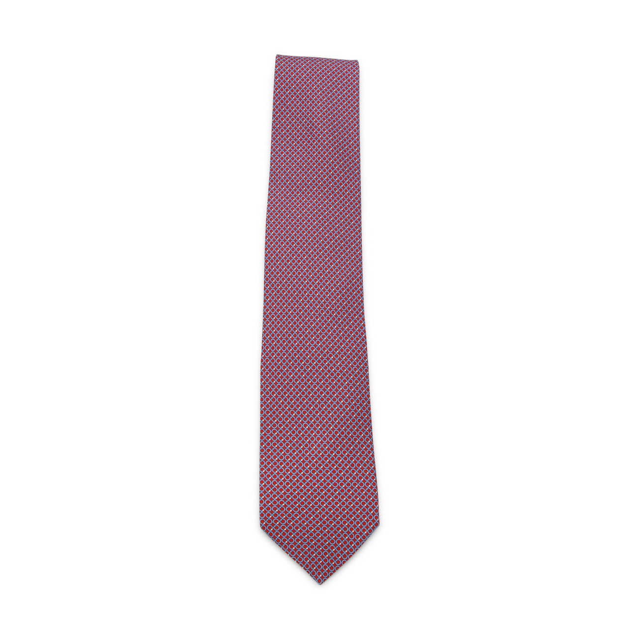 Red silk tie from Ferragamo featuring all over pattern and logo patch.