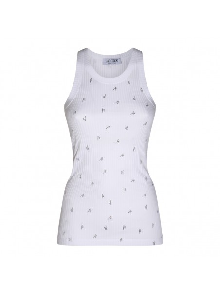 White cotton top from The Attico featuring round collar, sleeveless, all over details and regular vestibility.