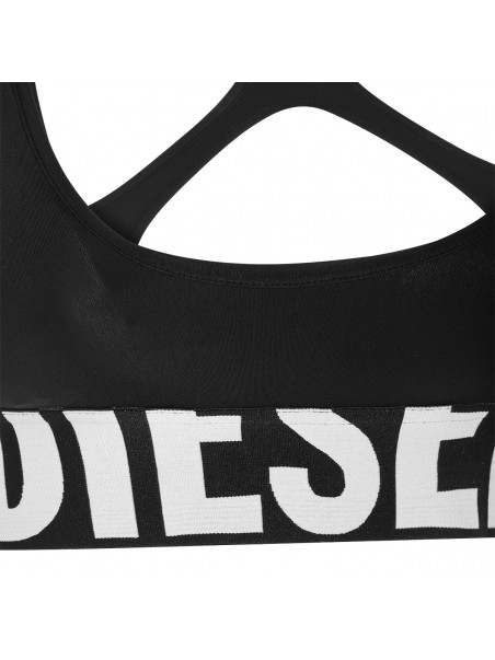 Black top from Diesel featuring round collar, sleeveless and frontal logo print.