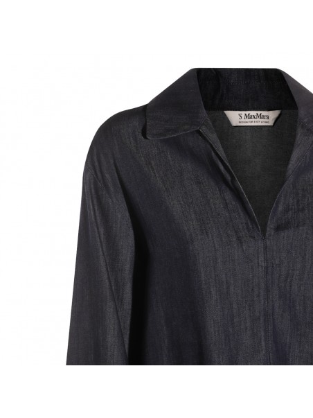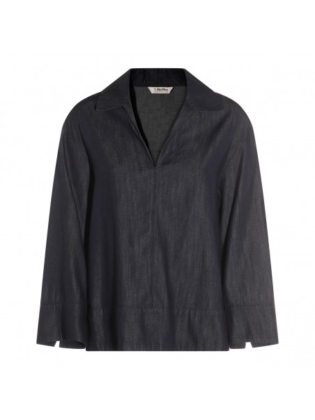 Denim Caterina top from S Max Mara featuring long sleeves, v neckline and soft vestibility.